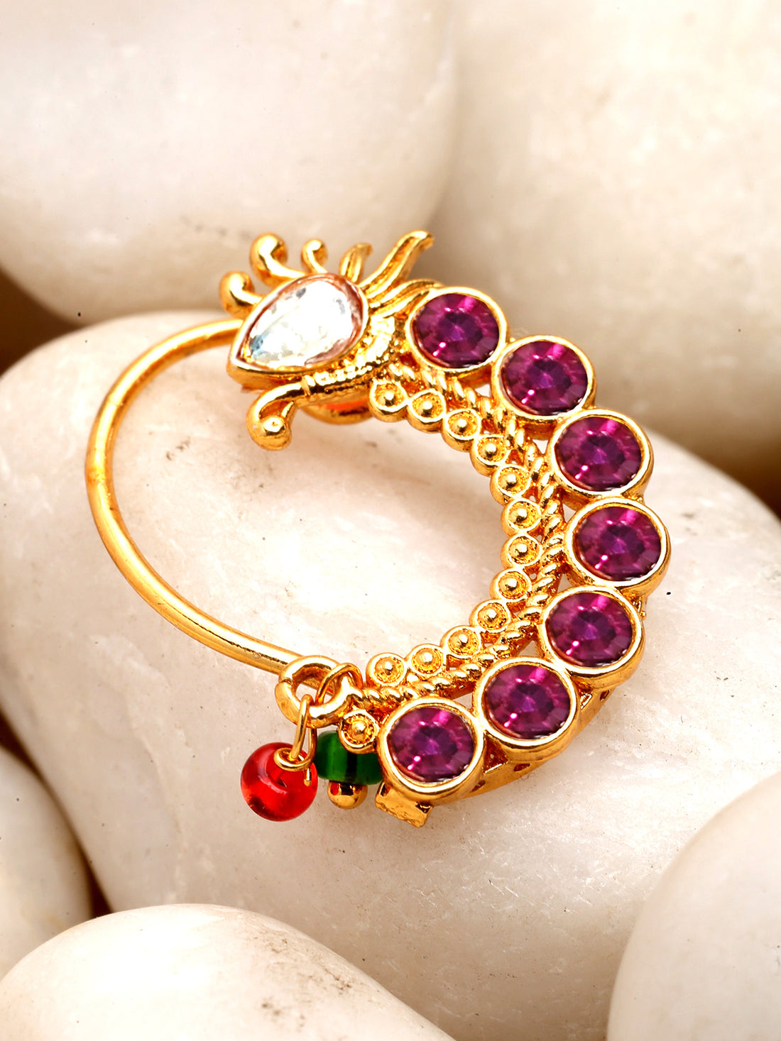 Karatcart Gold Plated Pink Stone Studded Nose Ring for Women
