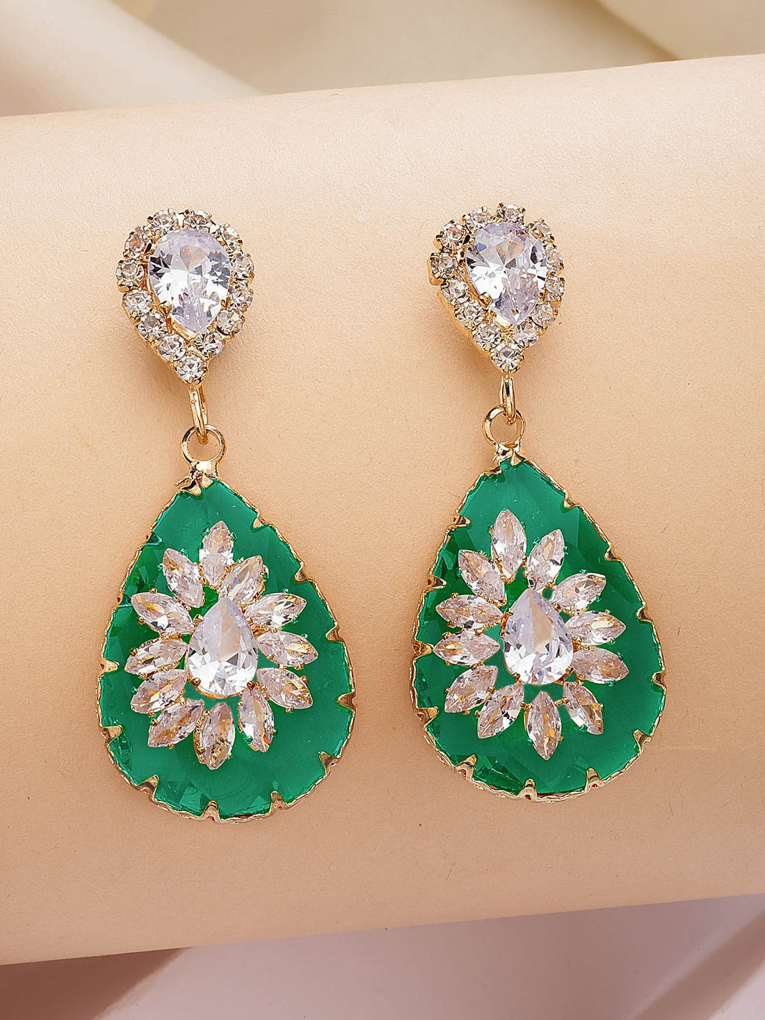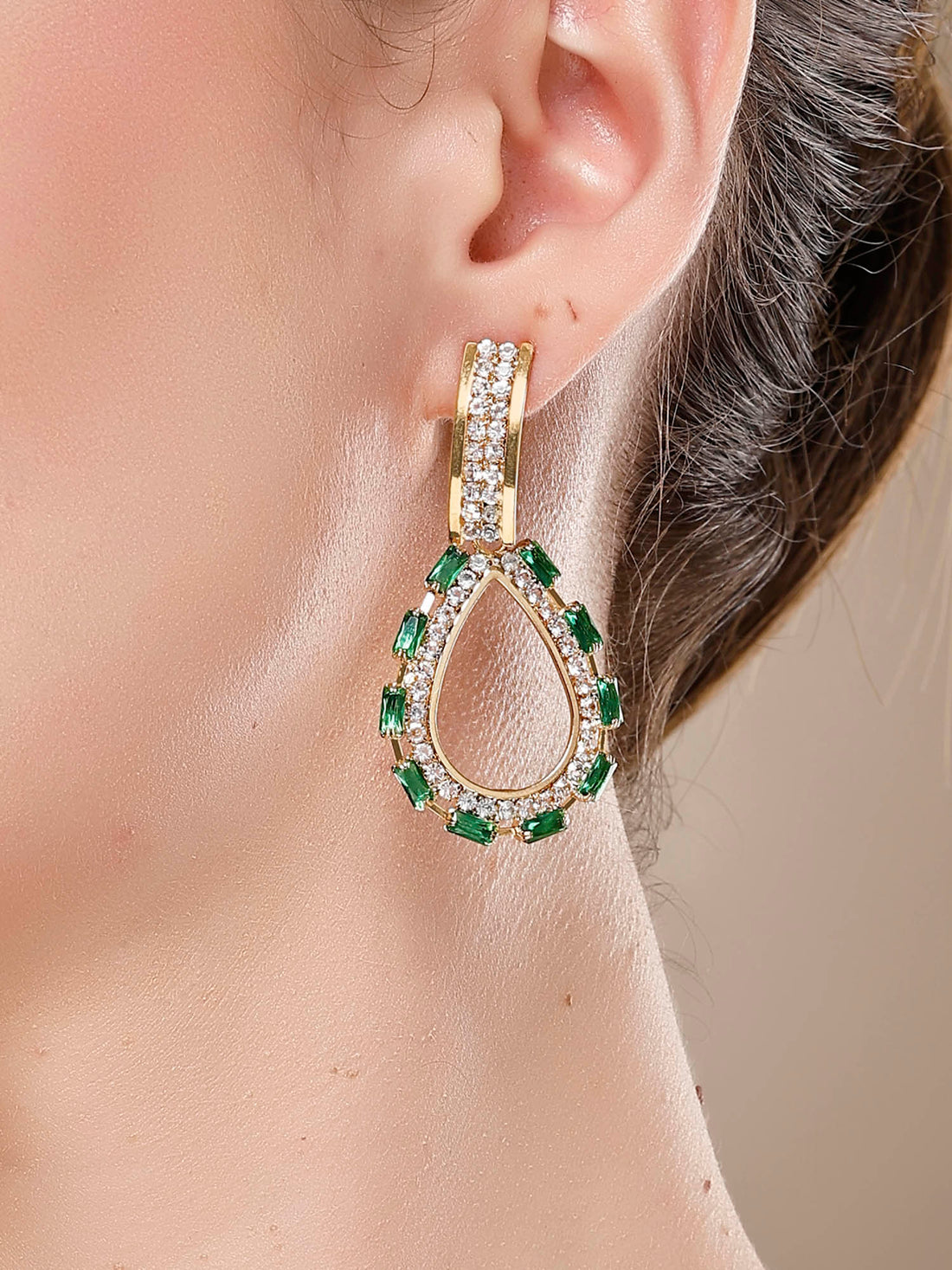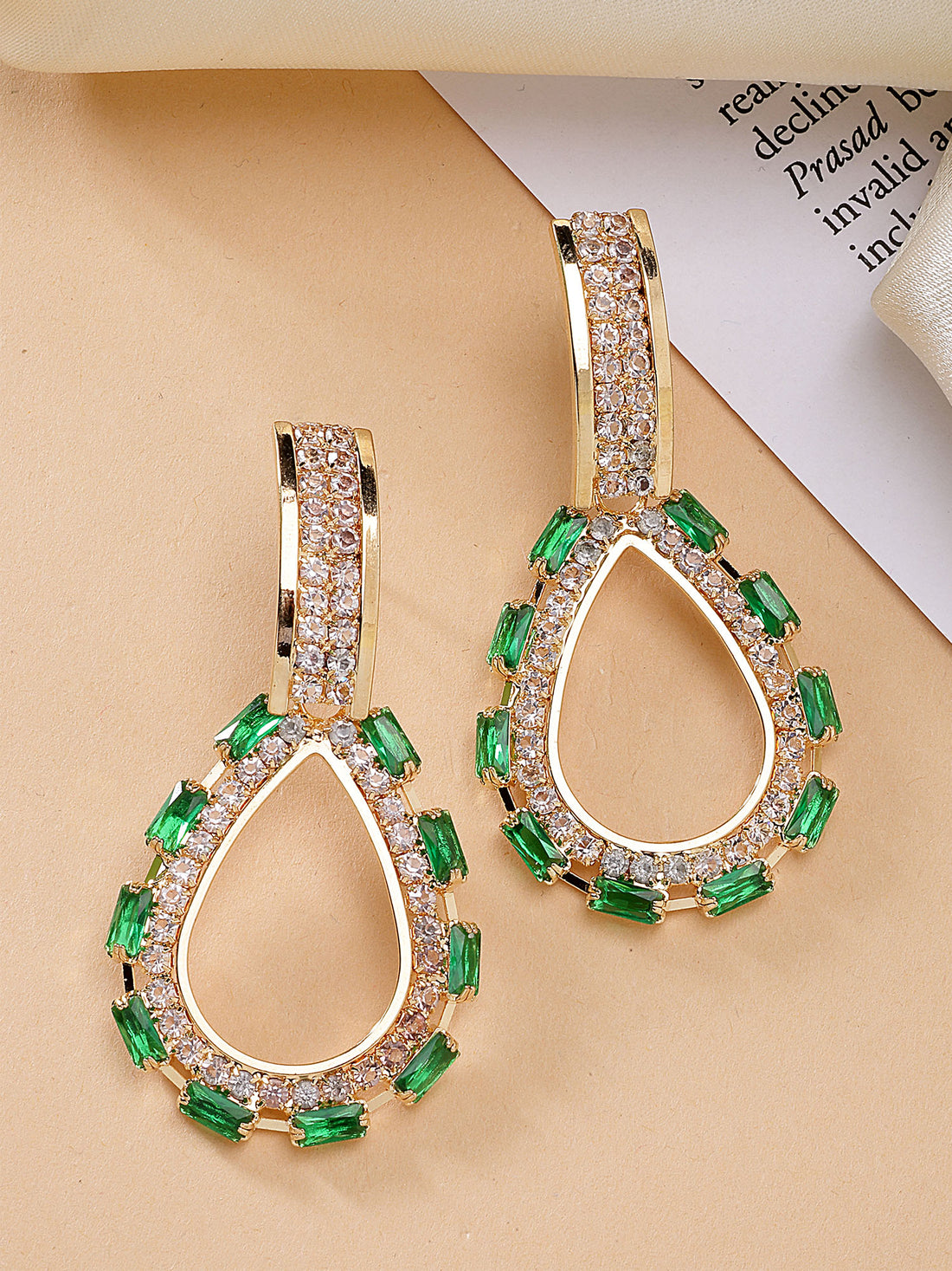 Bohey by KARATCART Gold-Plated Green Cubic Zirconia Studded Drop Earrings for Women