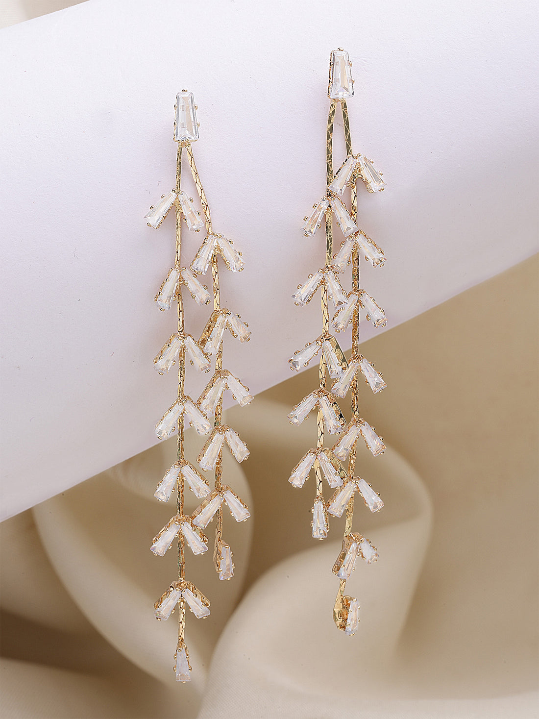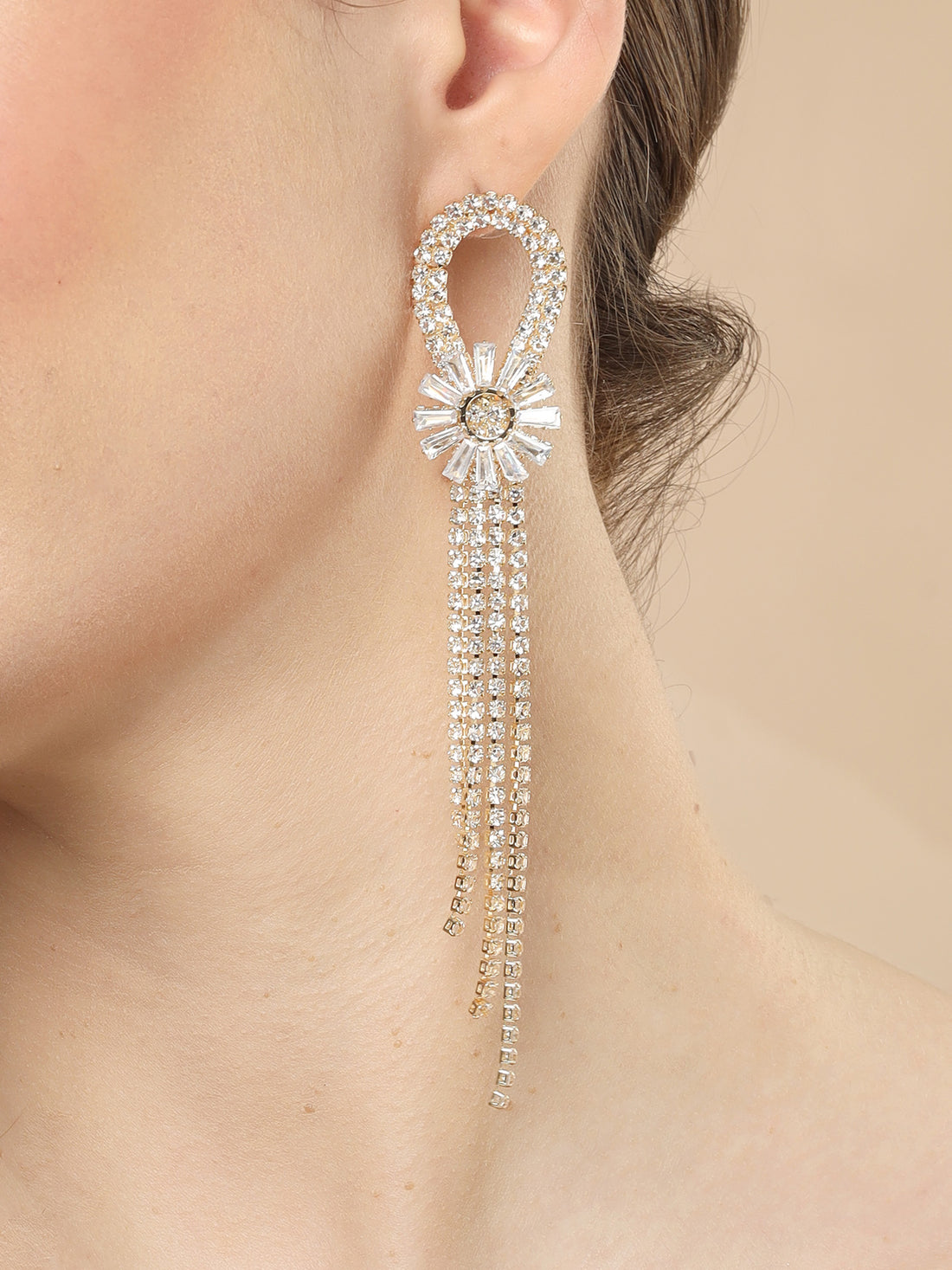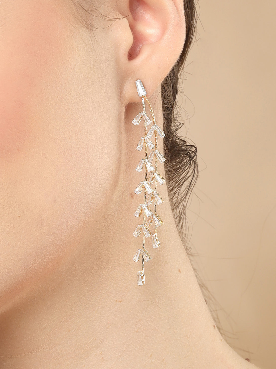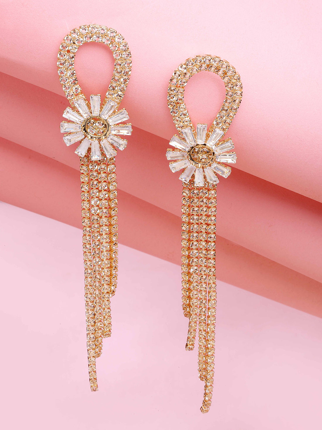 Bohey by KARATCART Gold-Plated Green Cubic Zirconia Studded Drop Earrings for Women