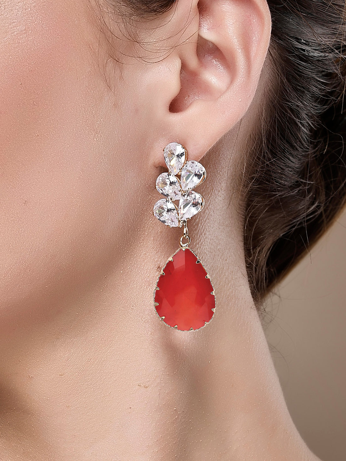 Bohey by KARATCART Gold-Plated Contemporary Red Drop Earrings for Women