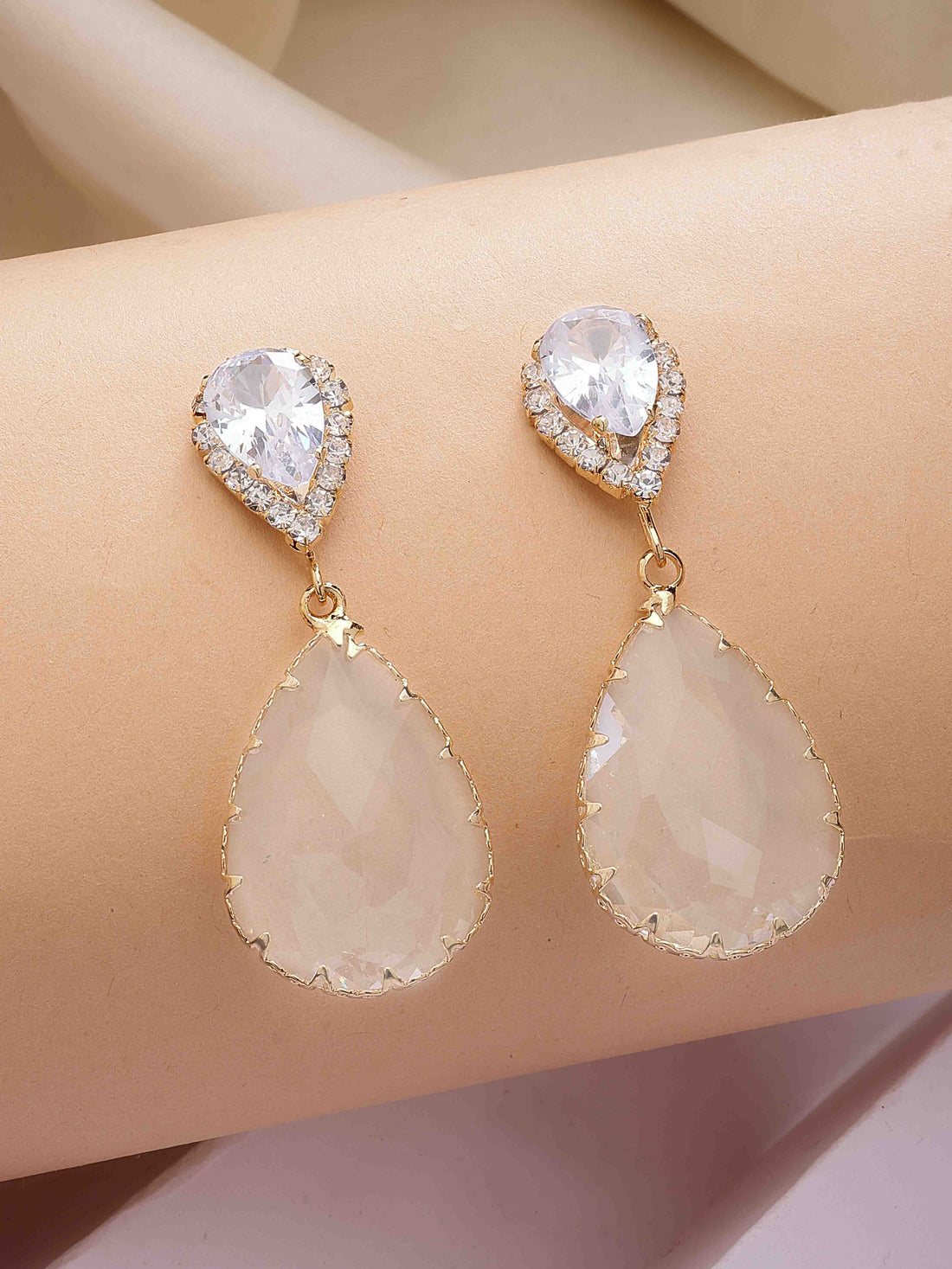 Bohey by KARATCART Gold-Plated Contemporary White Drop Earrings for Women
