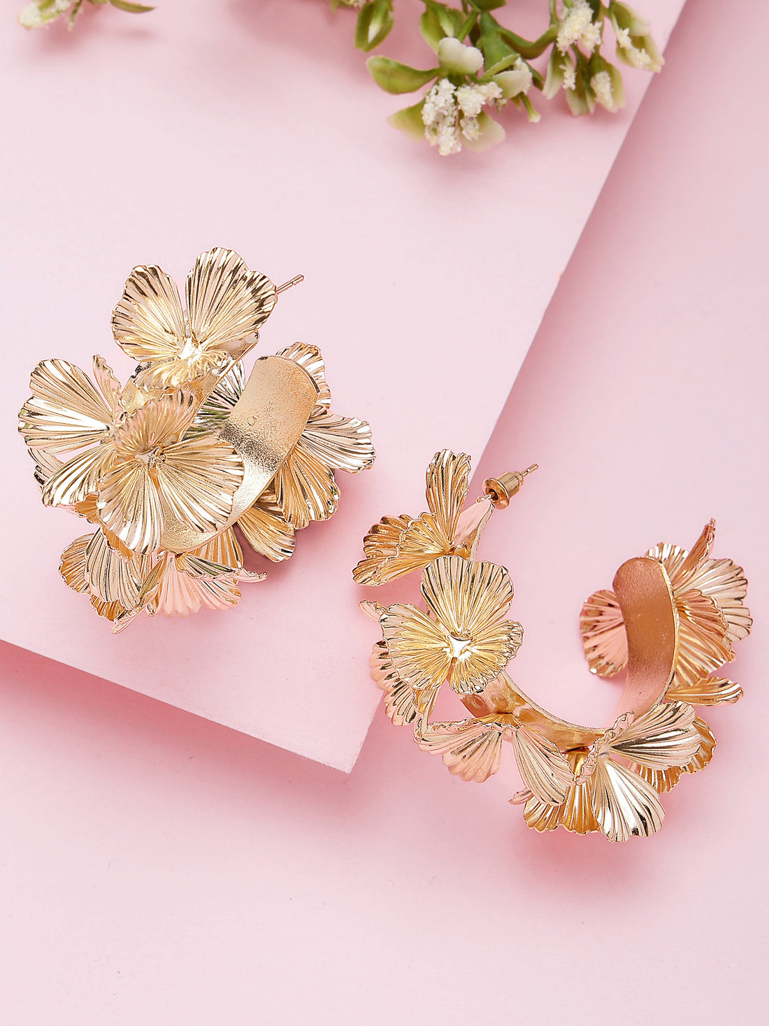 Bohey by KARATCART Floral Design Gold Plated Half Hoop Earrings