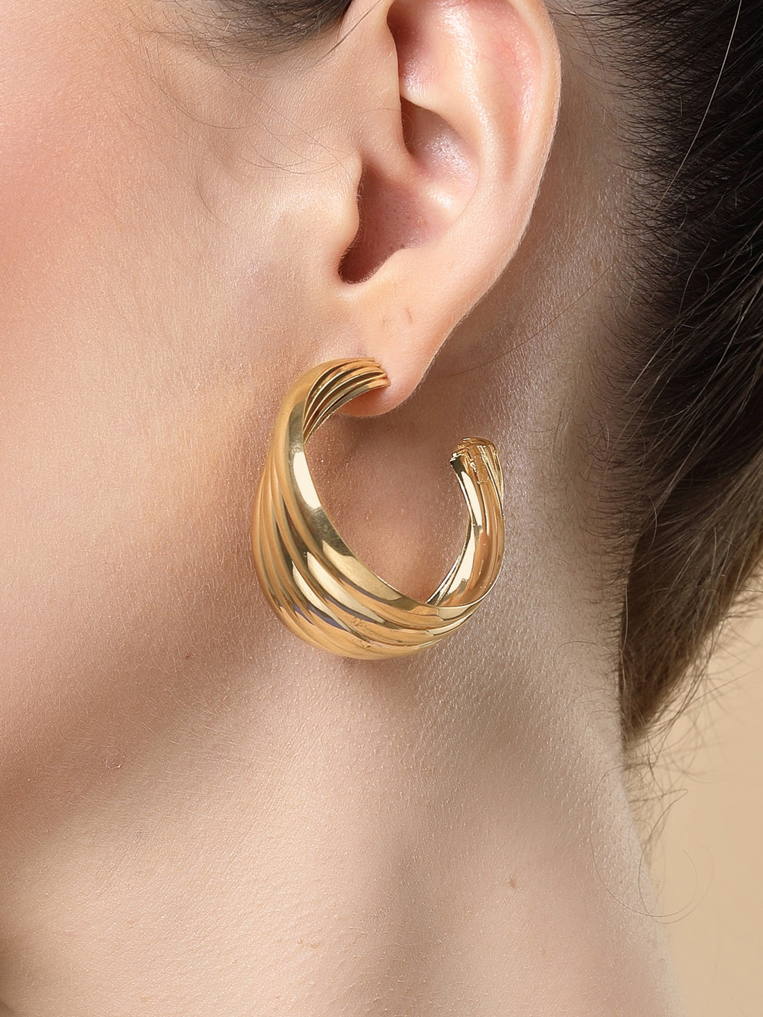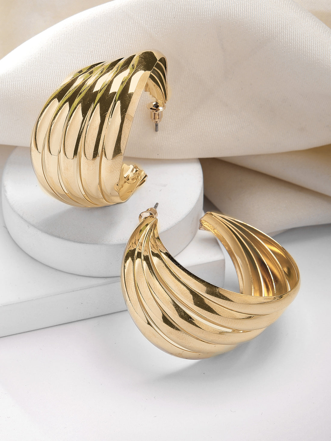 Bohey by KARATCART Gold Plated Contemporary Half Hoop Earrings