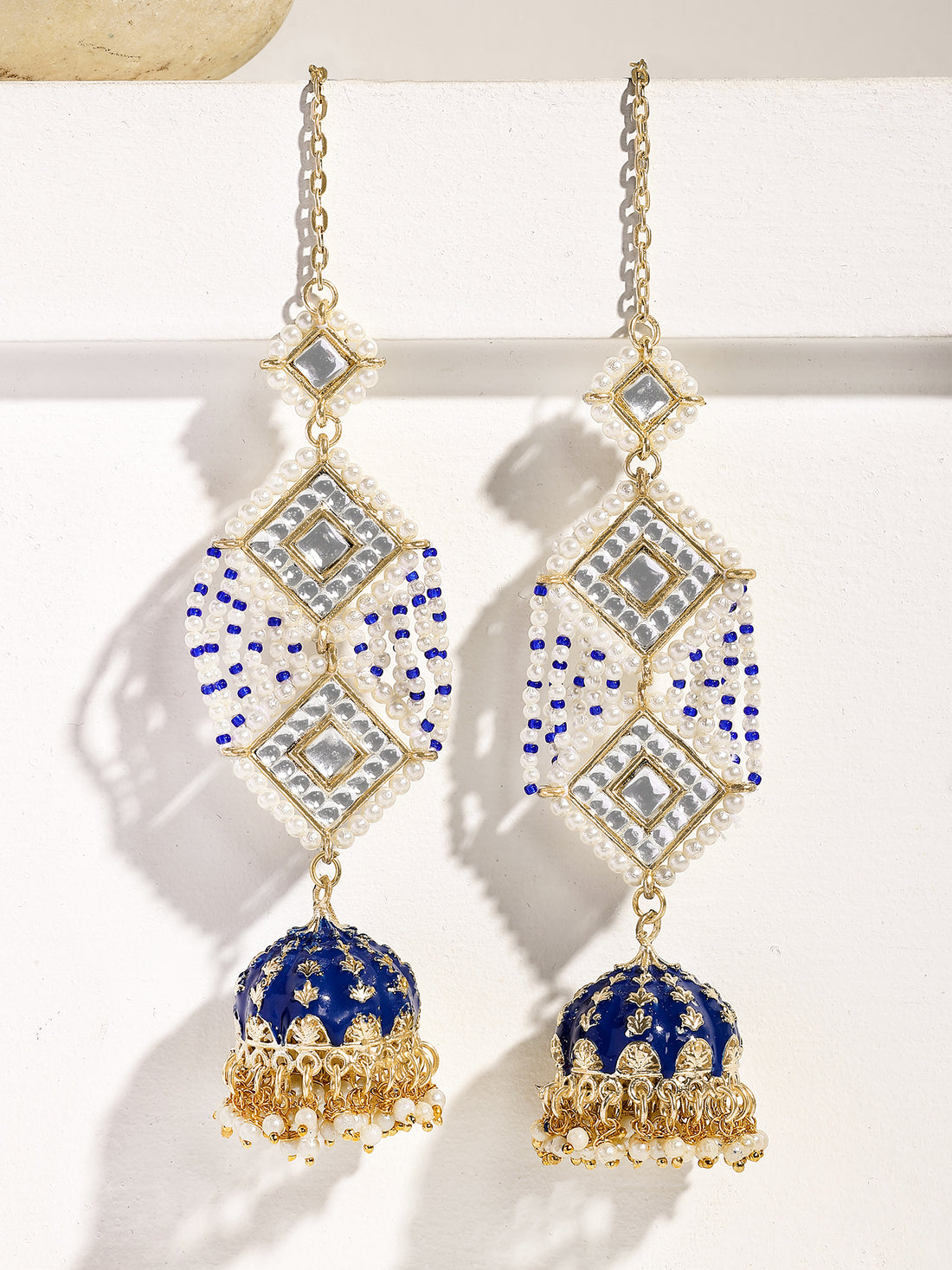 KARATCART Designer Gold-Plated Blue Meena and Kundan Jhumki Earrings for Women