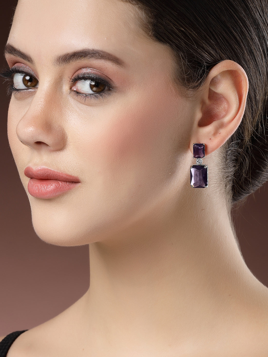 Karatcart Luxurious Purple American Diamond Stone Drop Earrings for Women