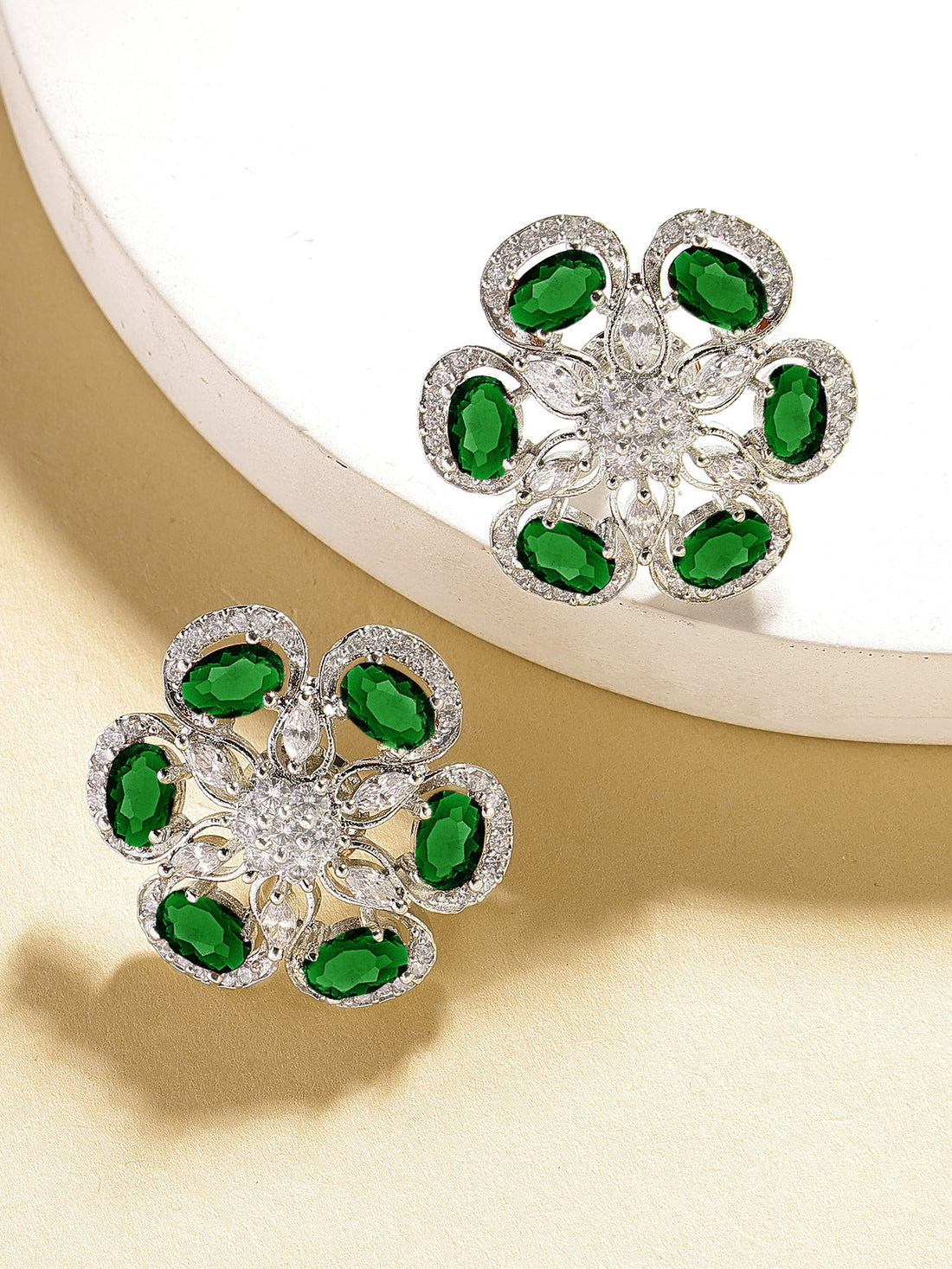 Karatcart Elegant Floral Design Green American Diamond Stud Earrings for Women