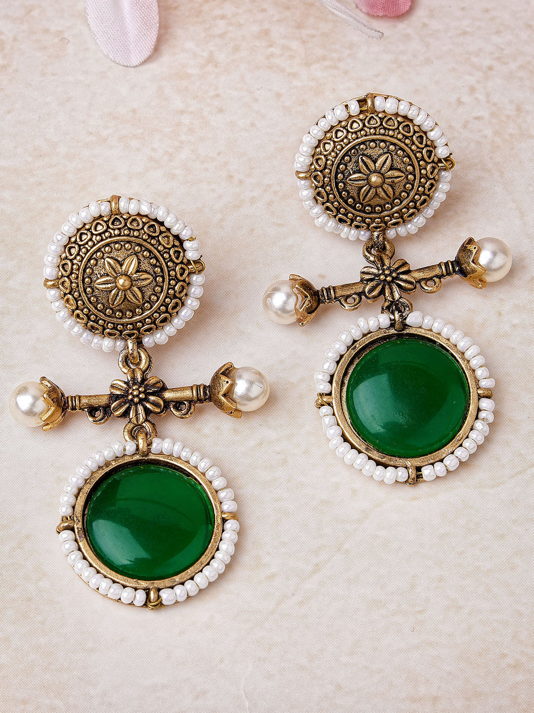 Karatcart Gold Plated Green Stone Drop Earrings for Women