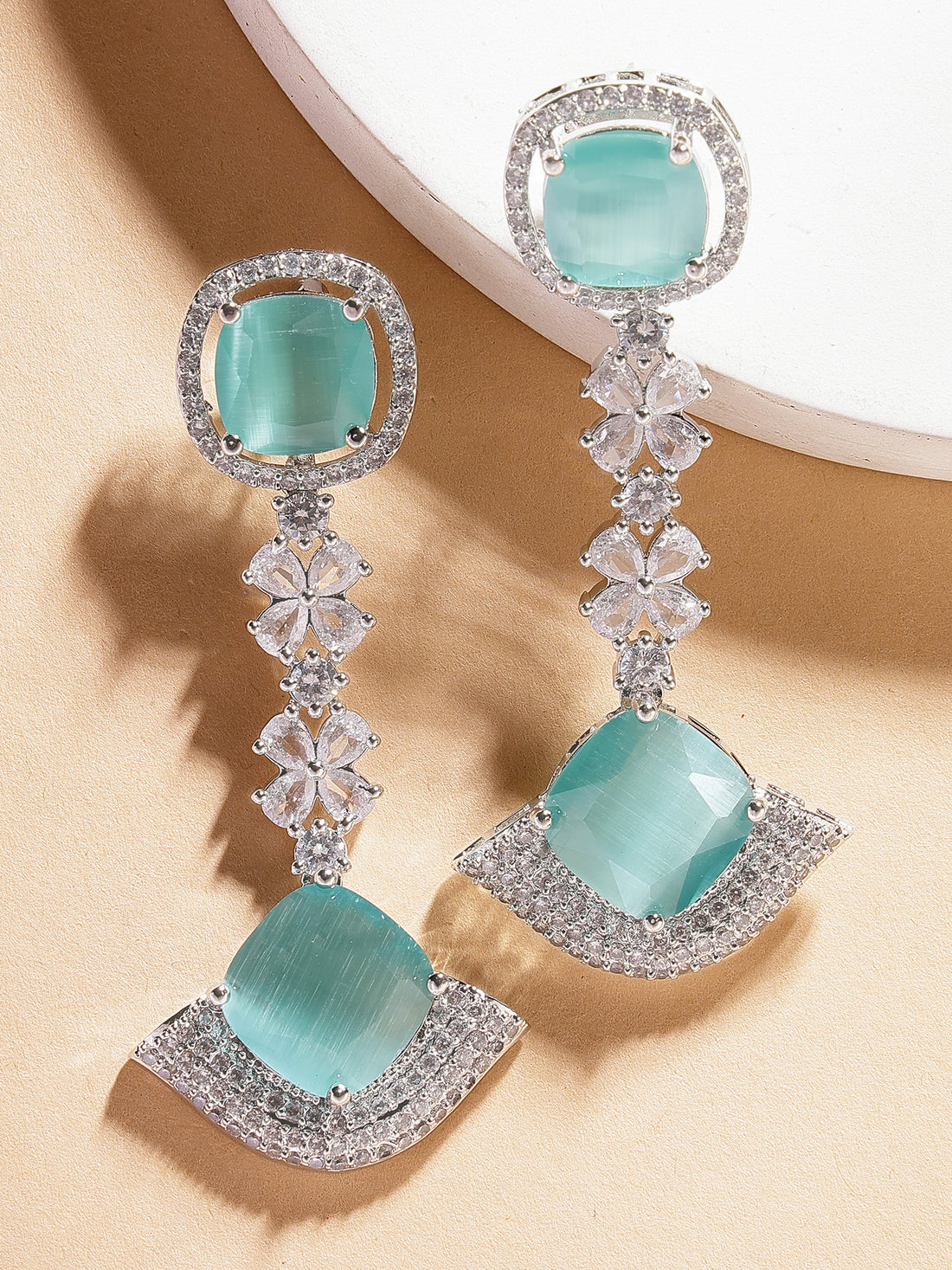 Karatcart Luxurious Teal American Diamond Stone Drop Earrings for Women