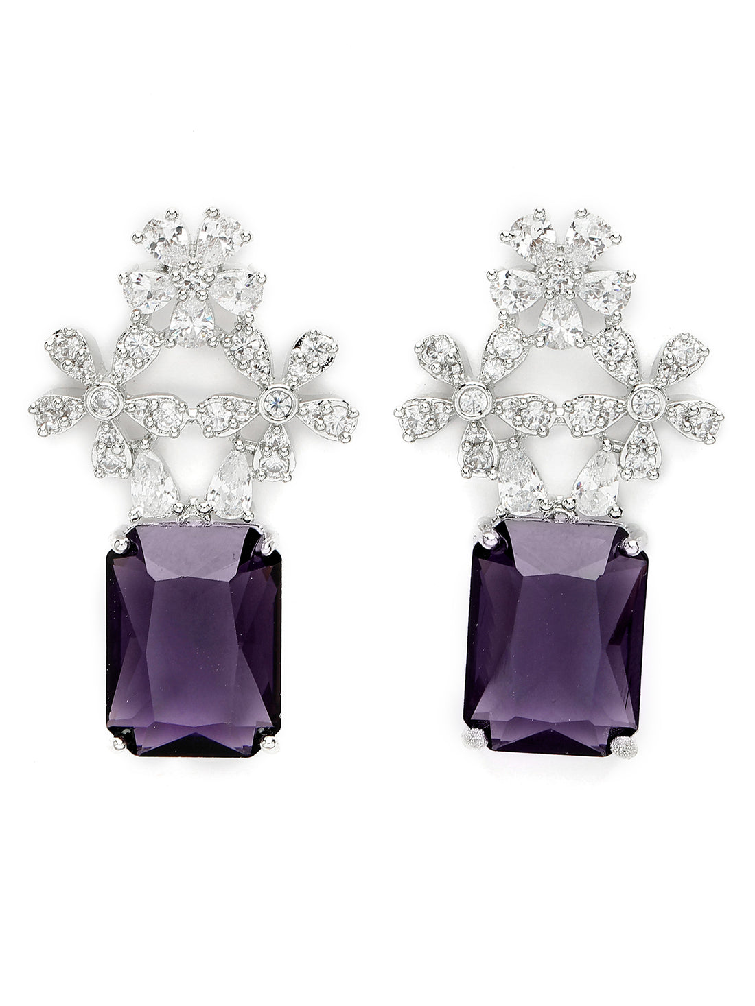 Karatcart Silver Plated Floral Shape Purple American Diamond Studs for Women