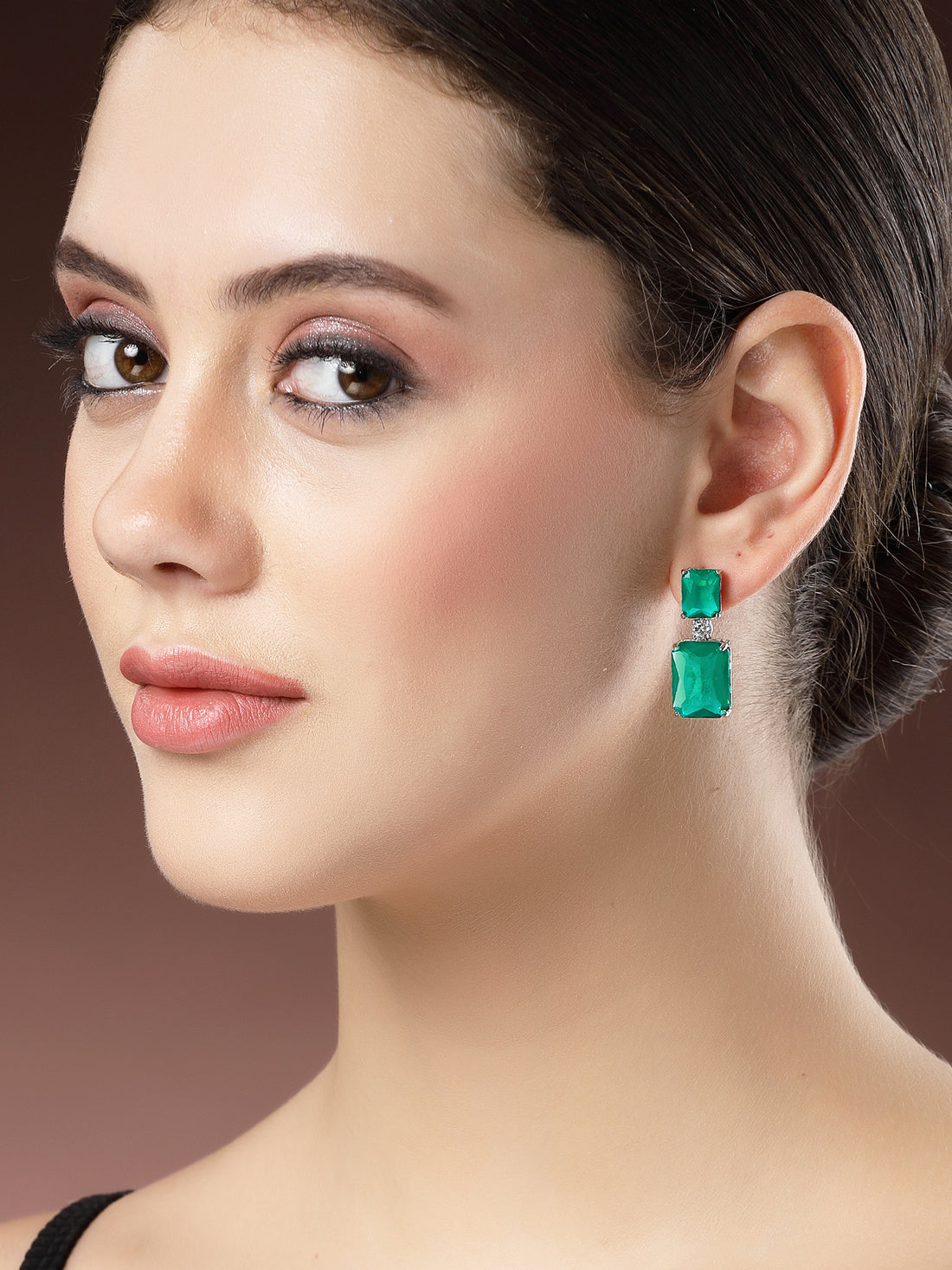 Karatcart Sparkling Green American Diamond Drop Earrings for Women