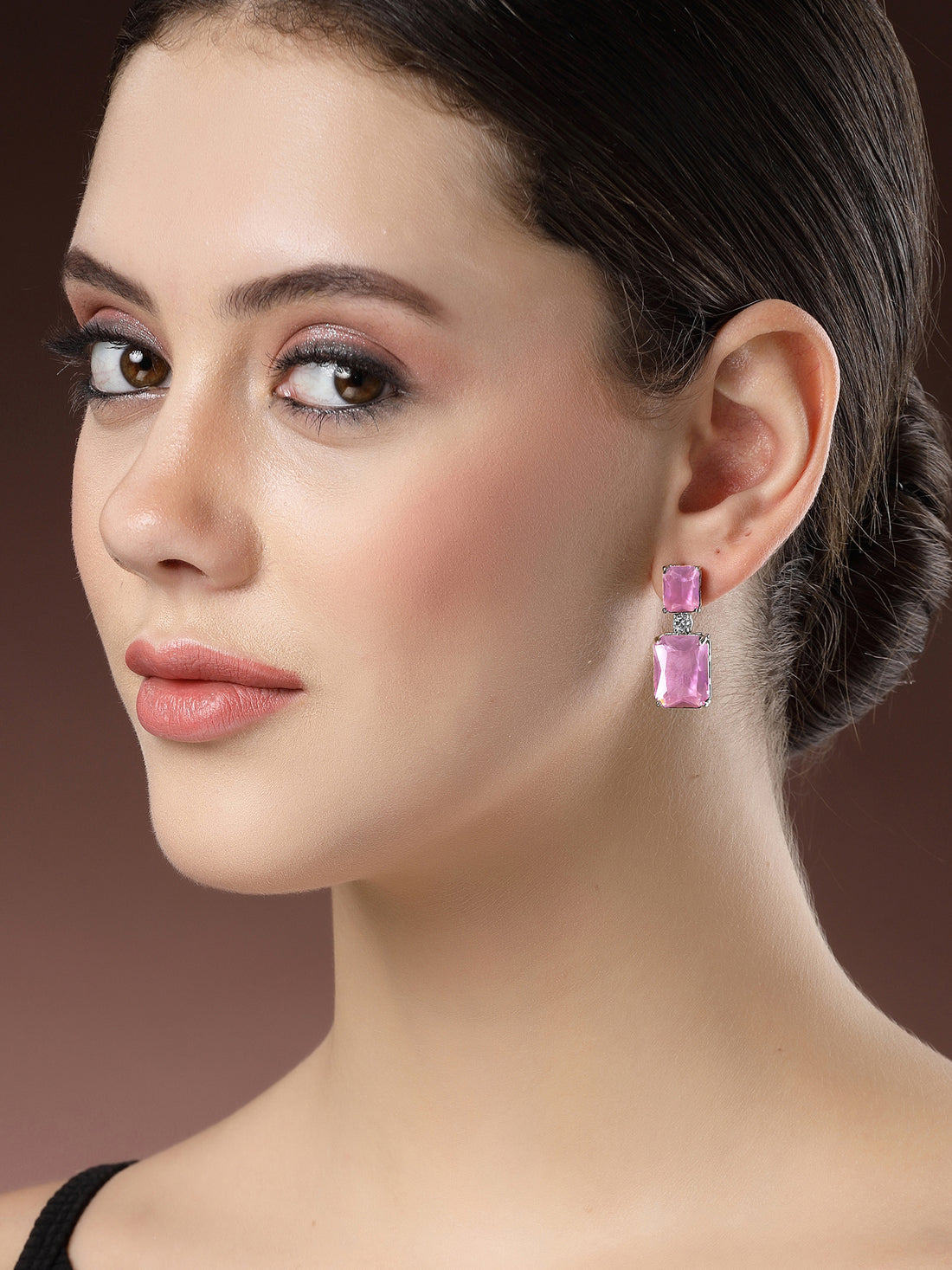 Karatcart Luxurious Pink American Diamond Stone Drop Earrings for Women