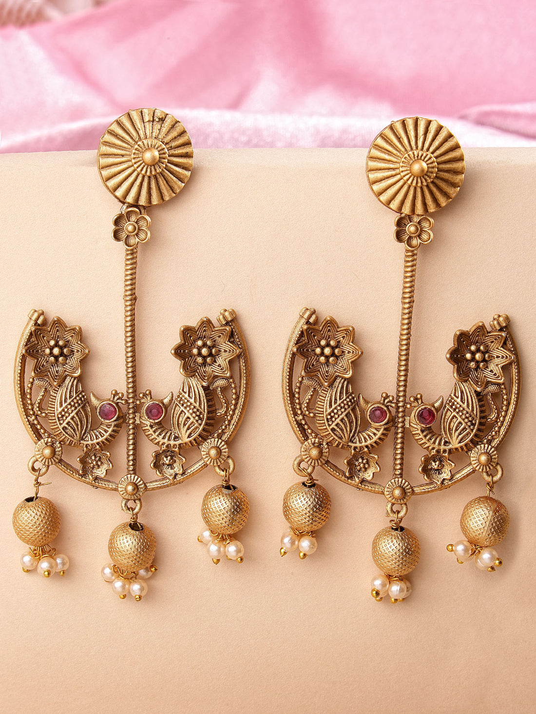 Karatcart Gold Plated Peacock Shape Drop Earrings for Women