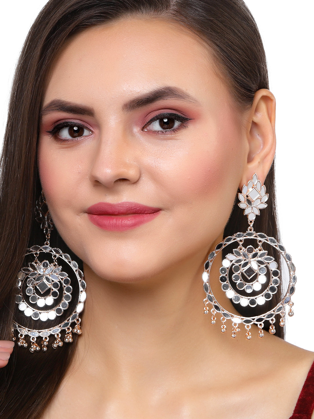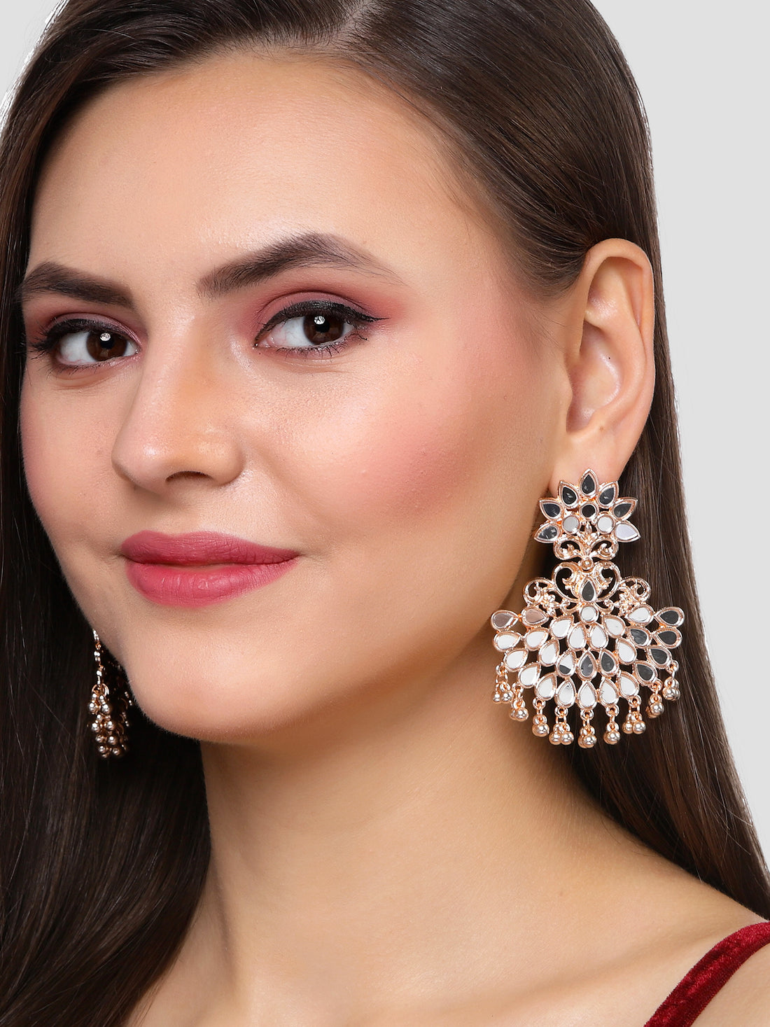 Karatcart Rose Gold Plated Floral Design Mirror Work Long Dangler Earrings for Women
