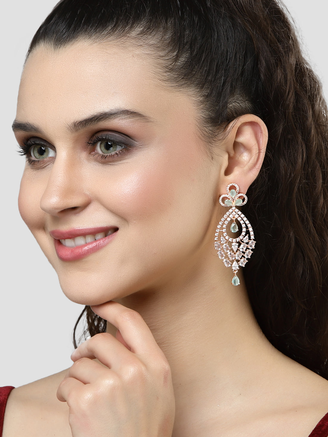 Karatcart Rose Gold Plated Lime Green Cubic Zirconia Studded Drop Shape Dangler Earrings for Women