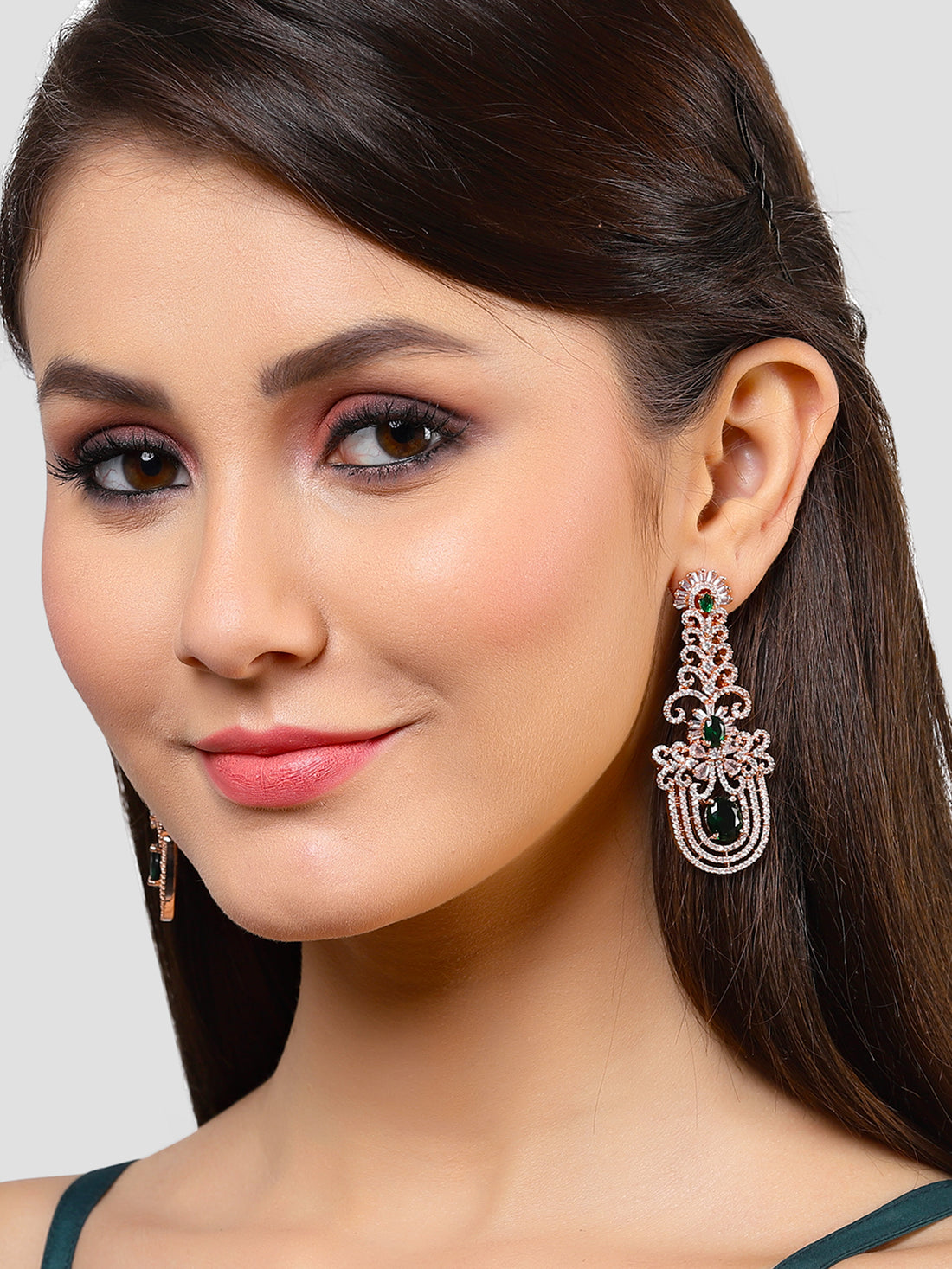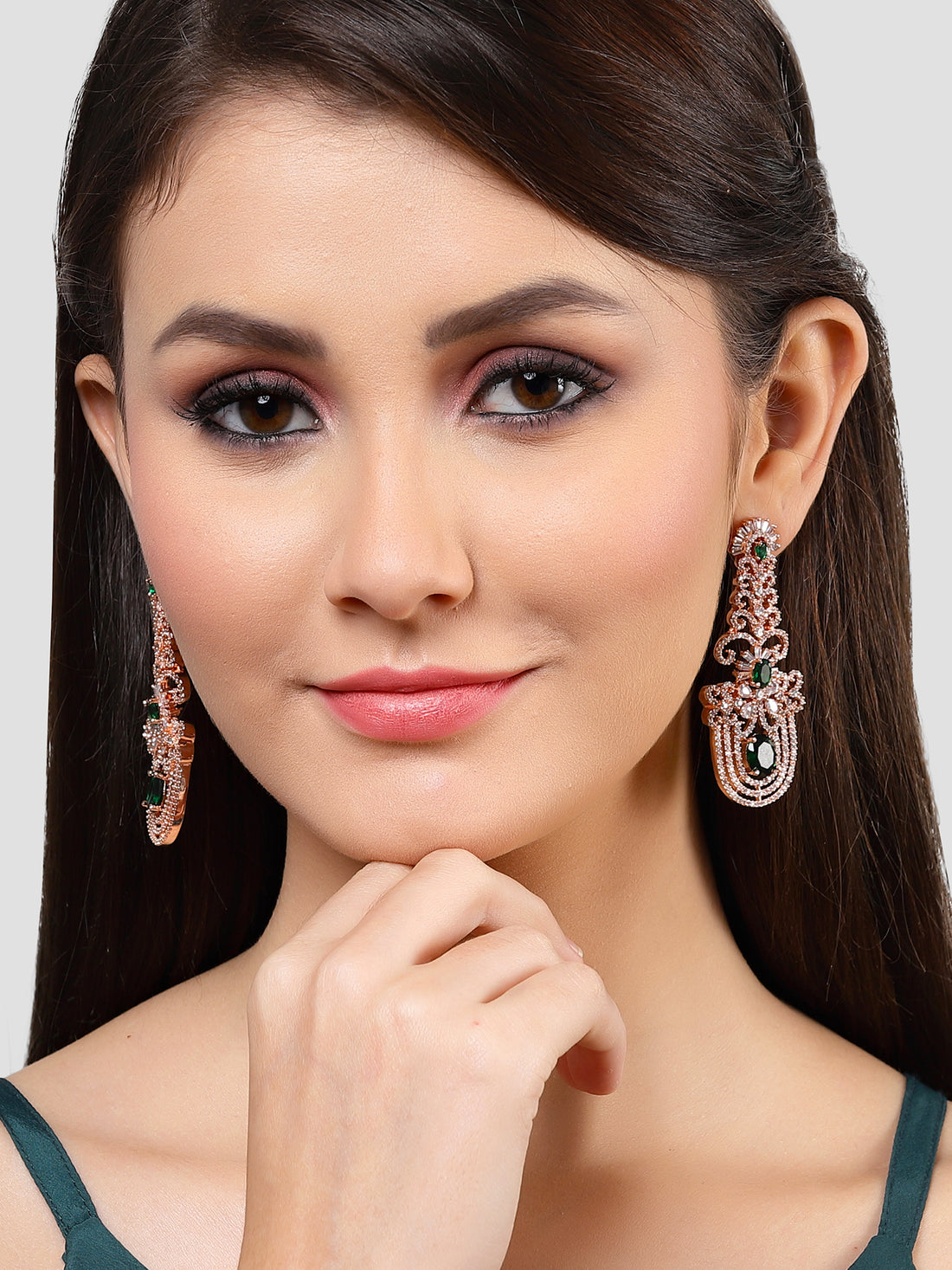 Karatcart Rose Gold Plated Green Cubic Zirconia Studded Dangler Earrings for Women