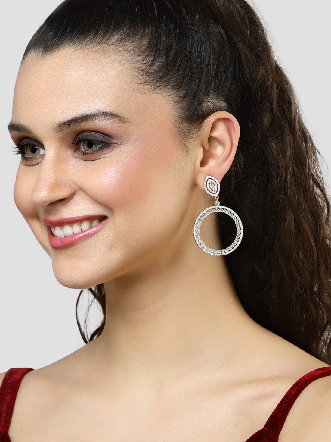 Karatcart Rose Gold Plated American Diamond Studded Dangler Earrings for Women