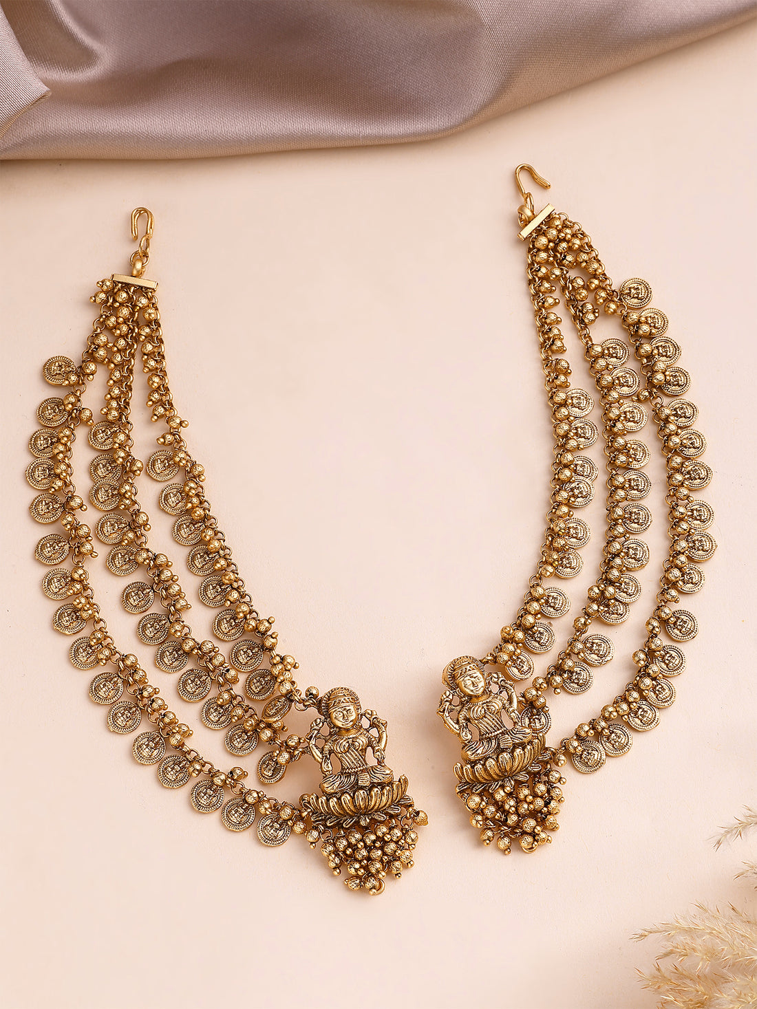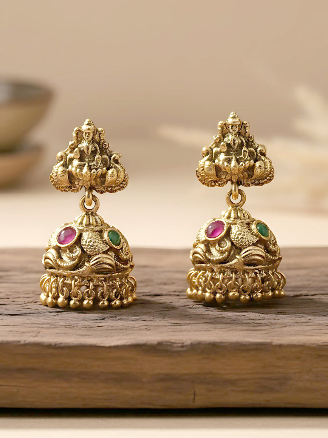 KARATCART Elegant Gold-Plated Lakshmi Mata Temple Jhumki Earrings for Women