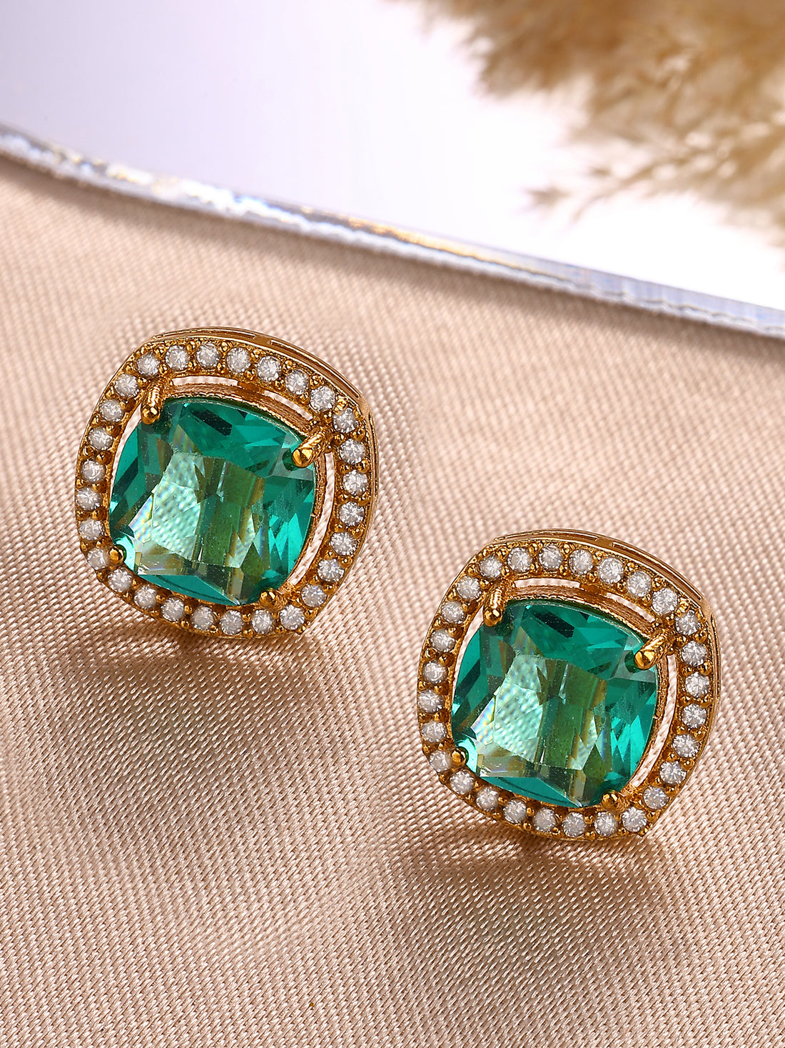 KARATCART Gold Plated American Diamond Stud Green Earrings for Women
