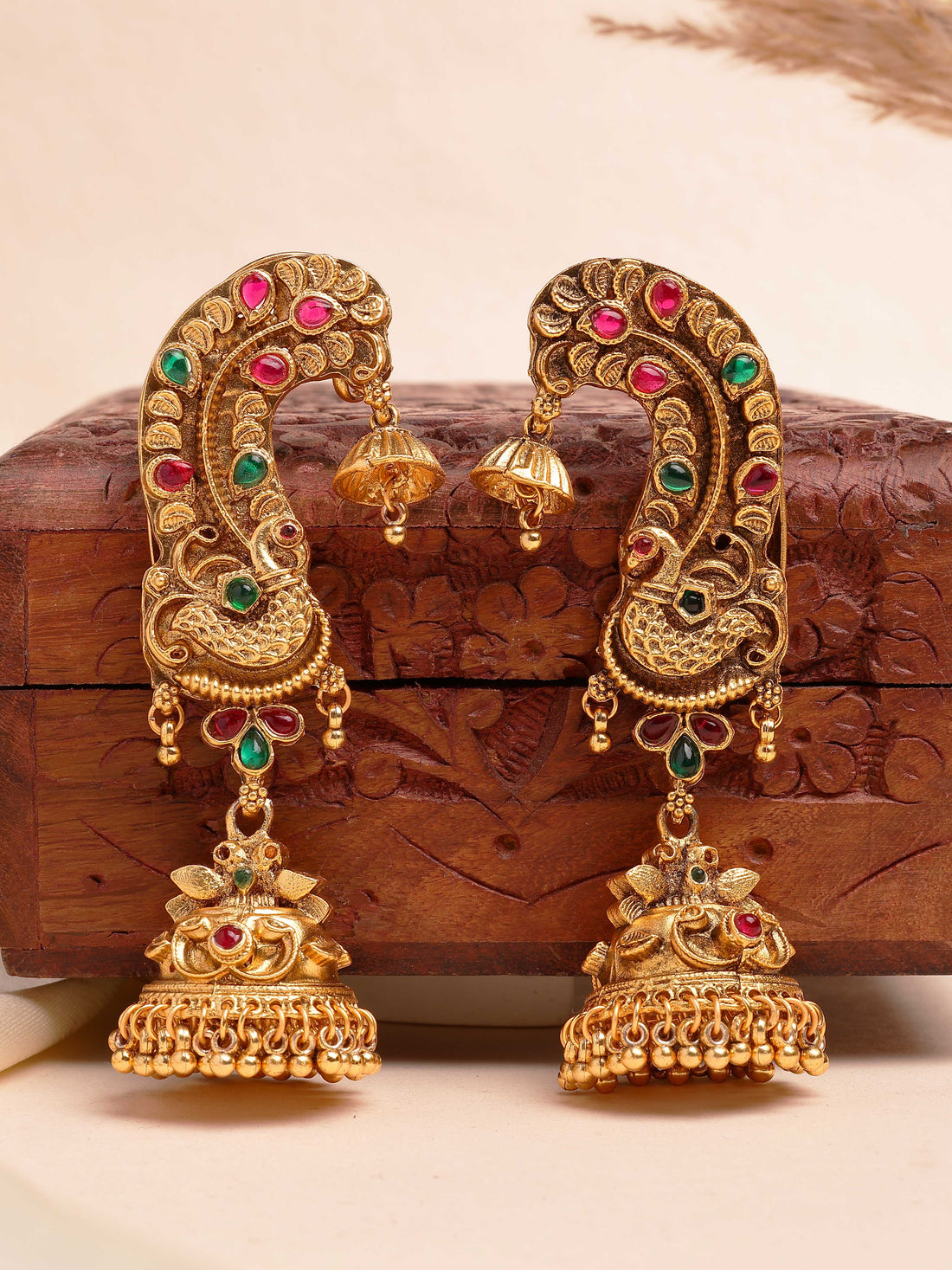 Karatcart Temple Jewellery Style Gold Plated Peacock Jhumki Earrings for Women
