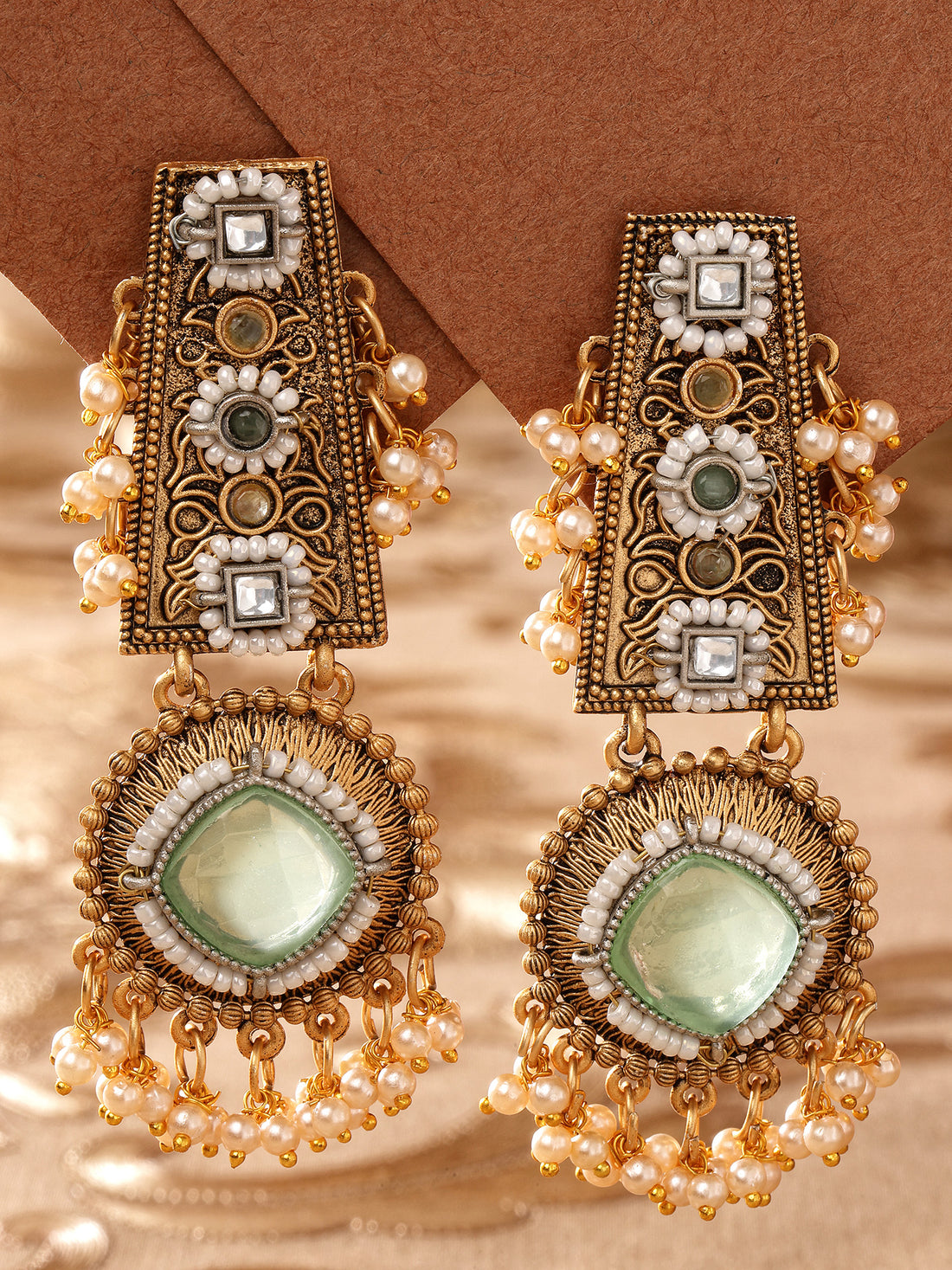 KARATCART Gold Plated Stone Dangler Gold Earrings for Women