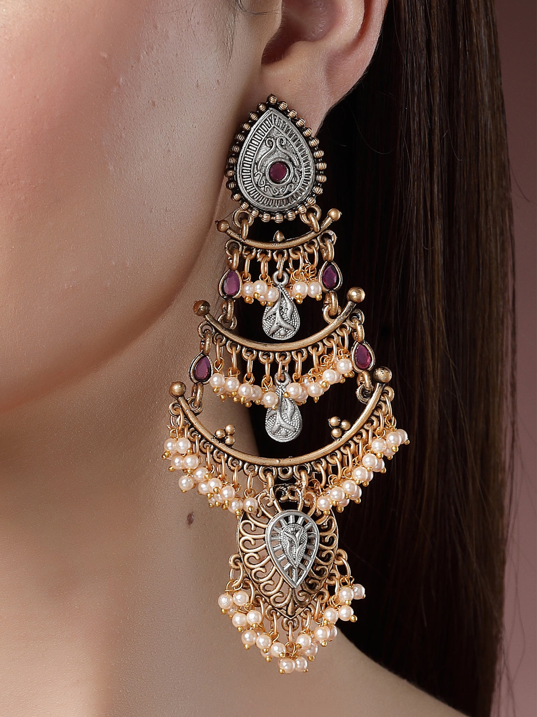 Karatcart Elegant Gold Plated Long Oxidised Dangler Earrings for Women