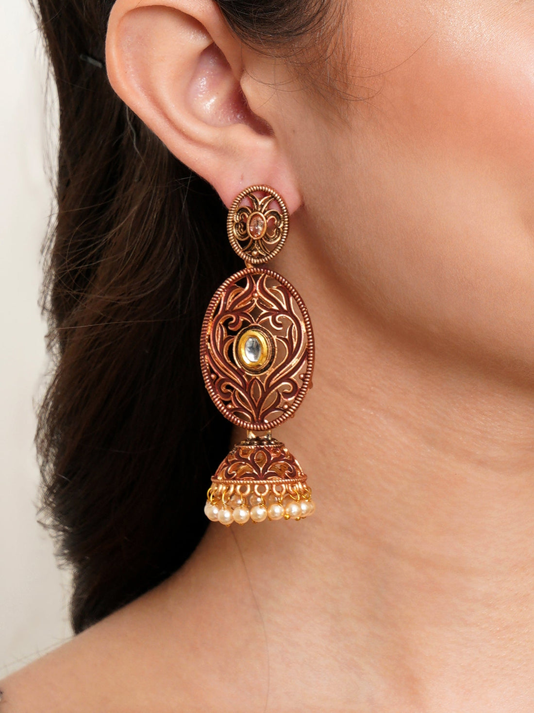 Karatcart Gold Plated Maroon Meena Dangler Jhumki Earrings for Women. Our products are designed with...