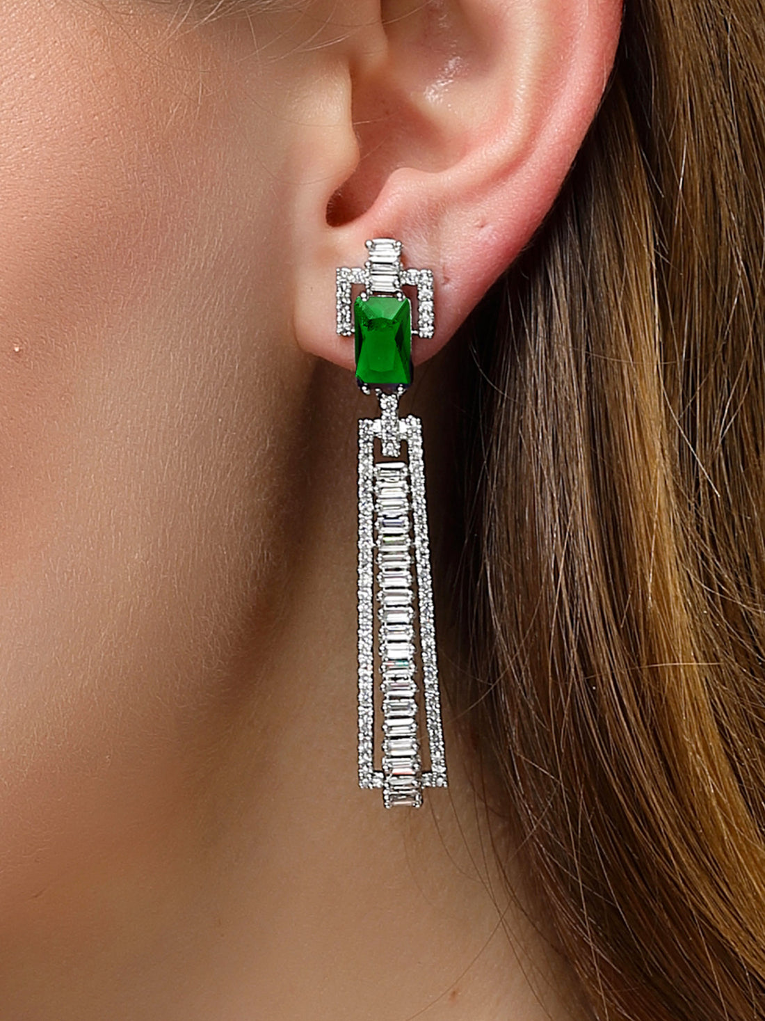 Karatcart Green Cubic Zirconia Studded Silver Plated Long Drop Earrings for Women