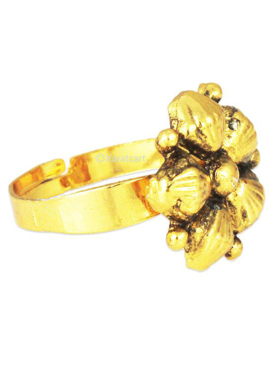 Floral Engraved Women Ring In Yellow Gold Finish