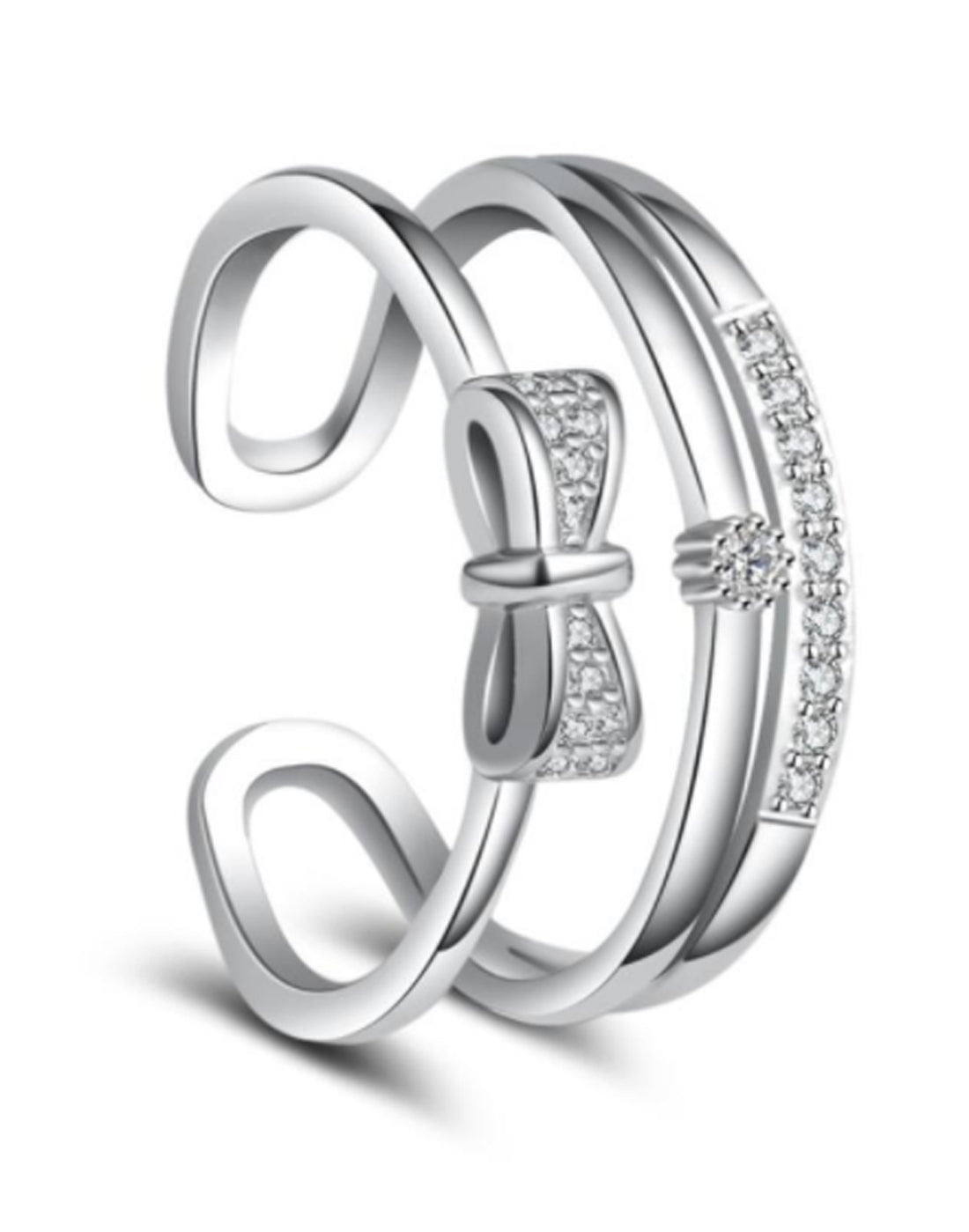 Platinum Plated Elegant Austrian Crystal Bow Adjustable Ring