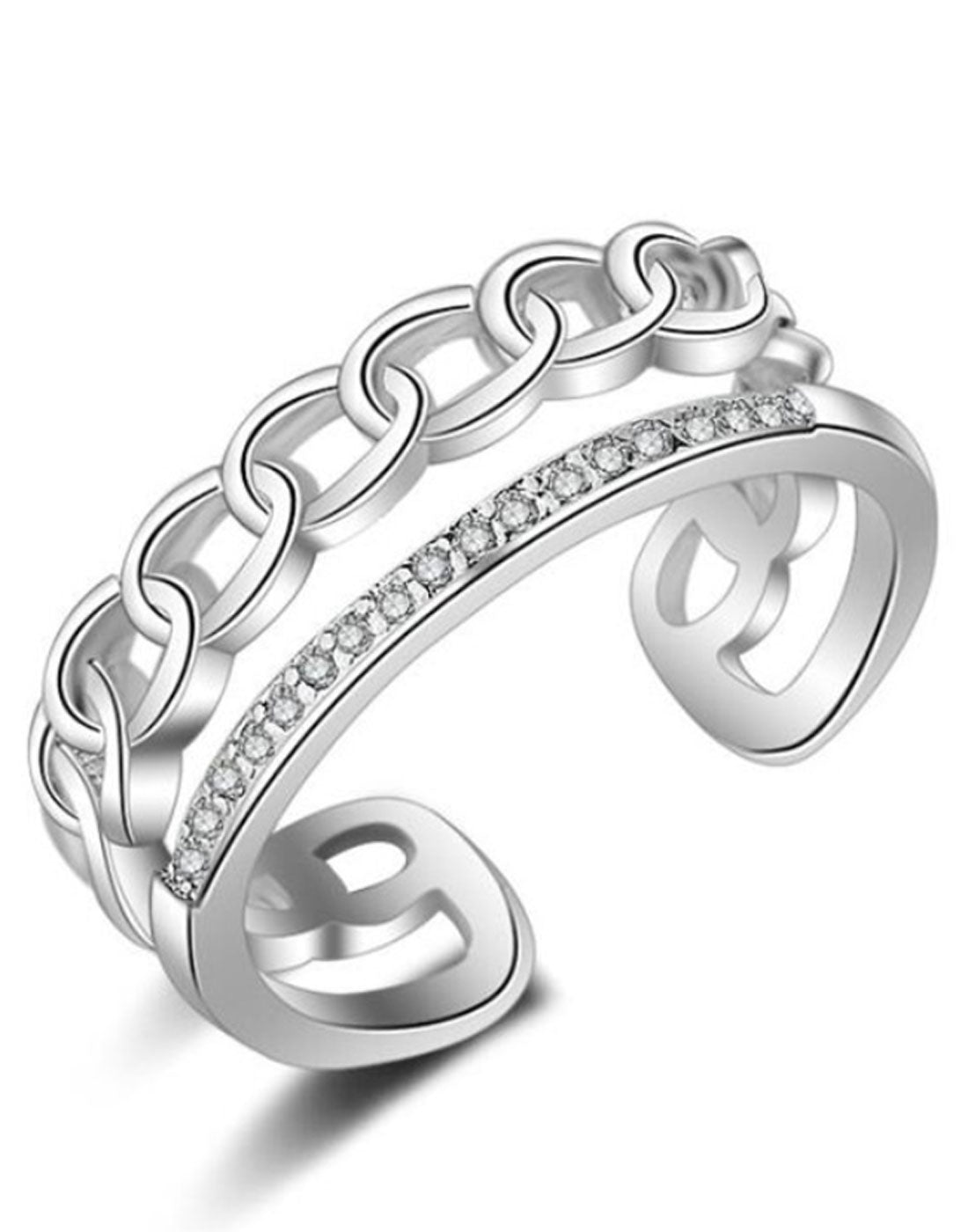 Platinum Plated Elegant Austrian Crystal Adjustable Ring