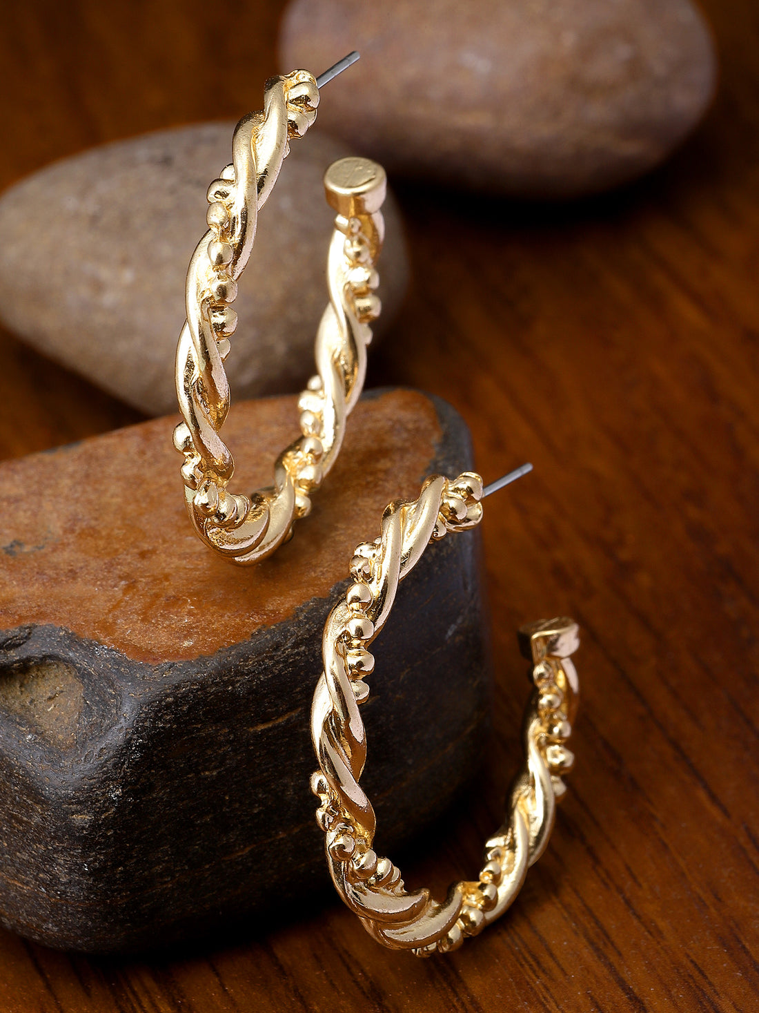 Bohey by KARATCART Gold-Plated Twisted Wire Design Half Hoop Earrings for Women