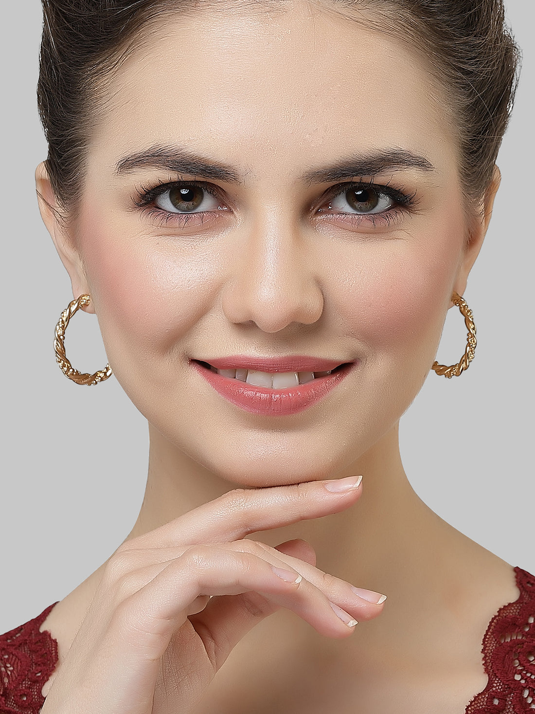 Bohey by KARATCART Gold-Toned Twisted Huggie Earrings for Women and Girls