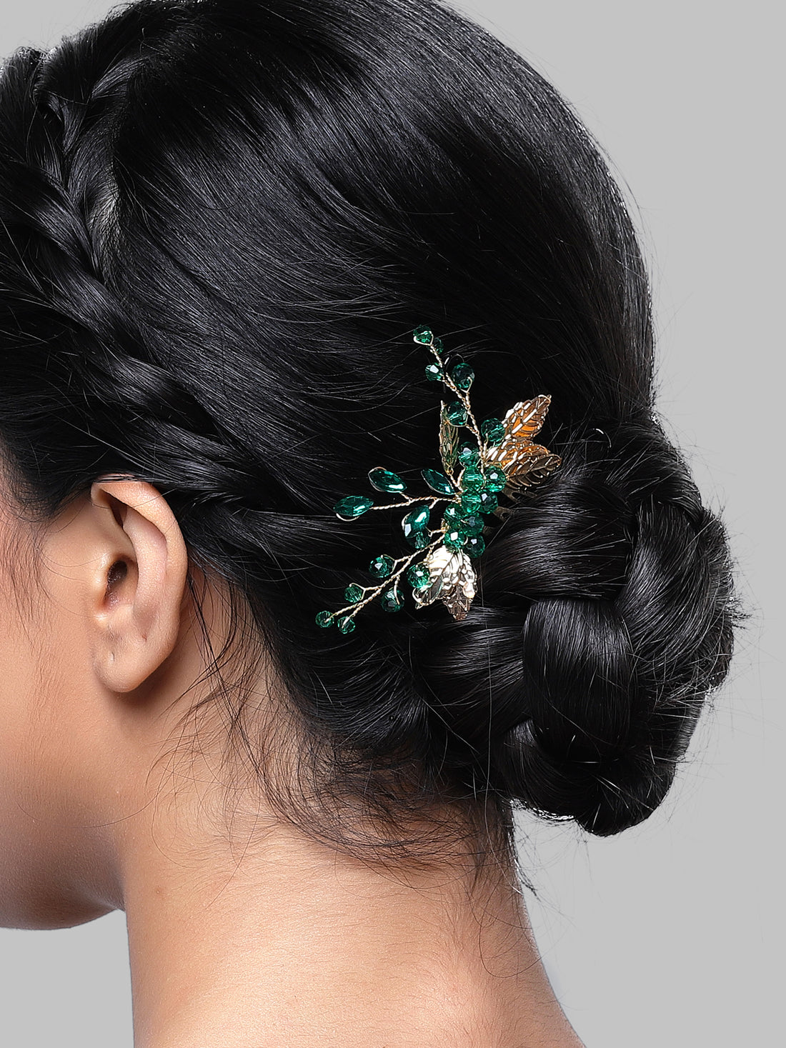 Karatcart Green Crystal Leaf Design Hair Clip for Women. Our products are designed with high-quality...