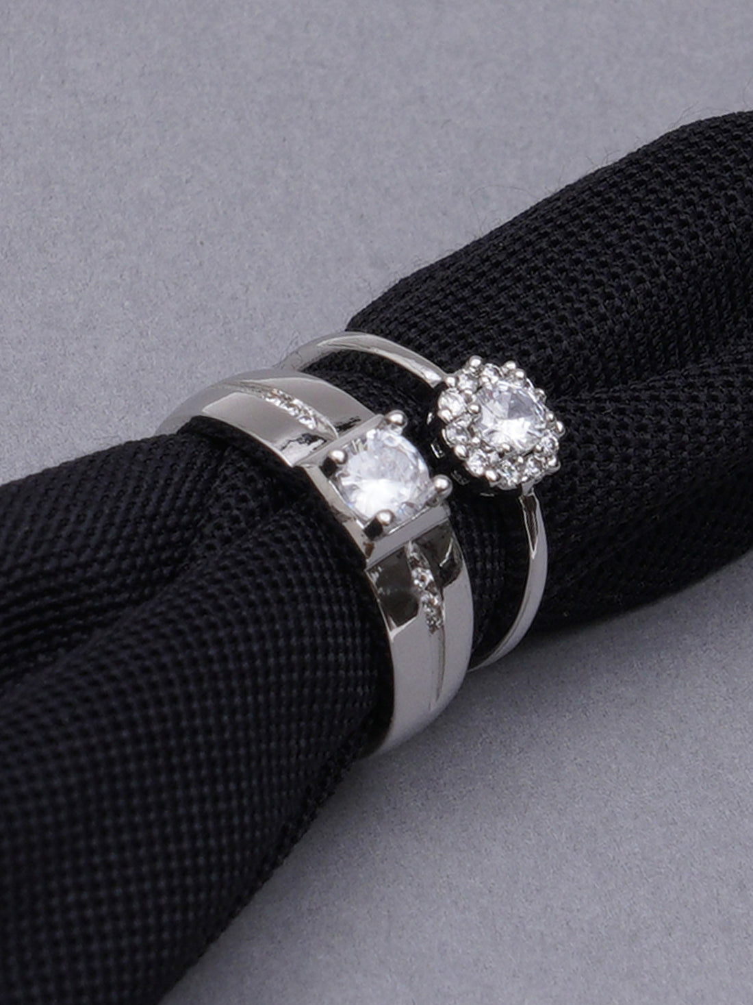 Karatcart Silver Crystal Elegant Couple Adjustable Ring for Men and Women. Made of High-Quality Metal...