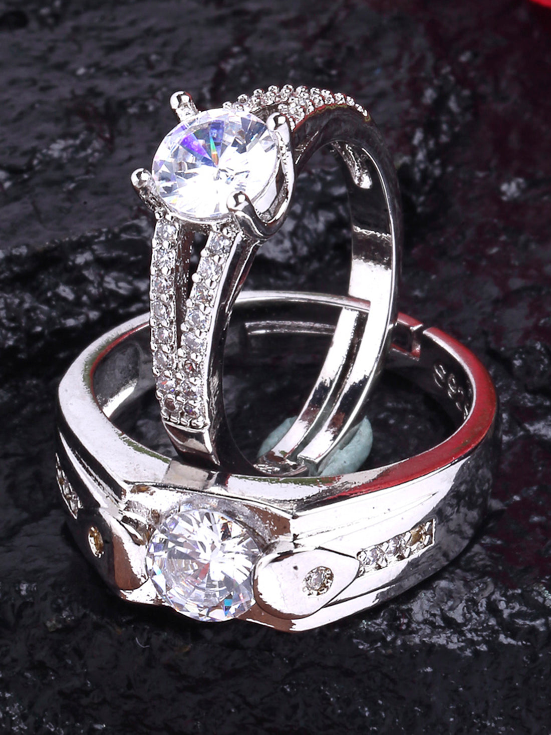Silver Crystal Platinum Plated Elegant Couple Adjustable Ring for Men and Women