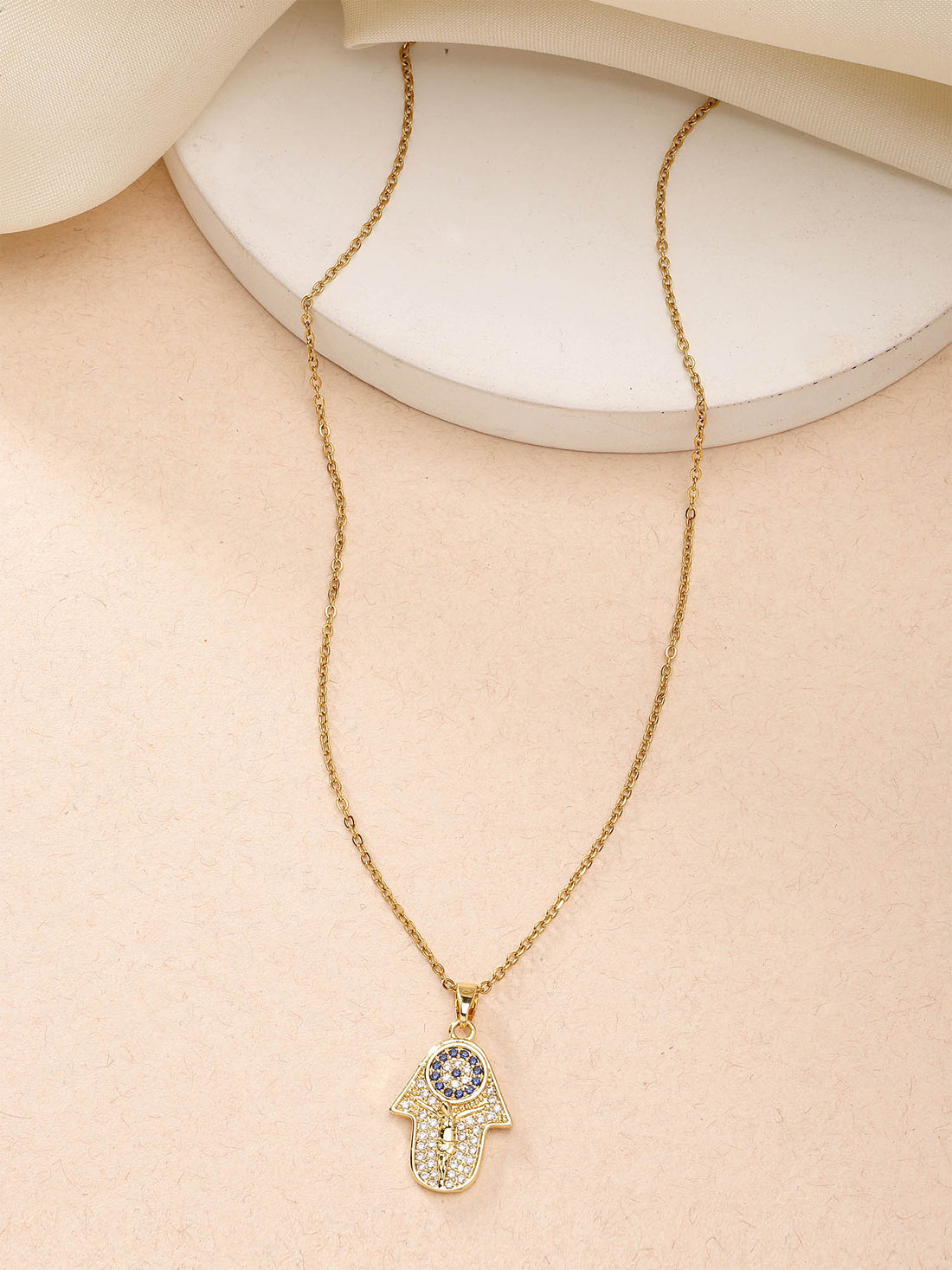 Bohey by KARATCART Gold-Plated Blue Cubic Zirconia Studded Evil Eye Pendant for Women