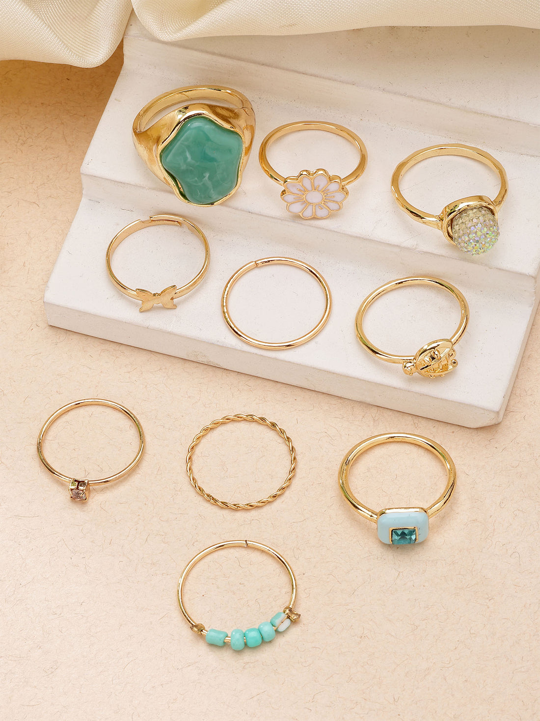 Bohey by KARATCART Set of 11 Gold-Plated Boho Midi Finger Rings for Women