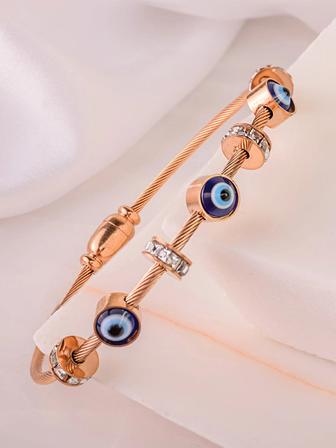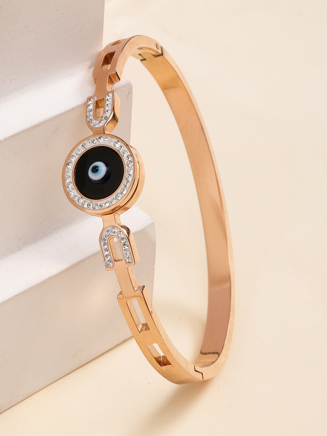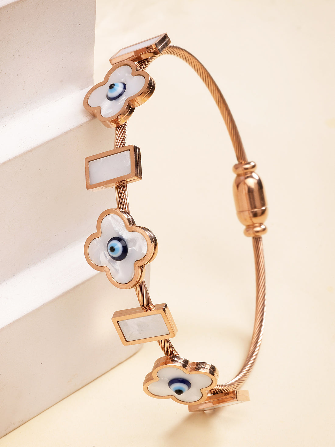 Bohey by KARATCART Rose Gold-Plated Evil Eye Enamel Bangle-Style Bracelet for Women