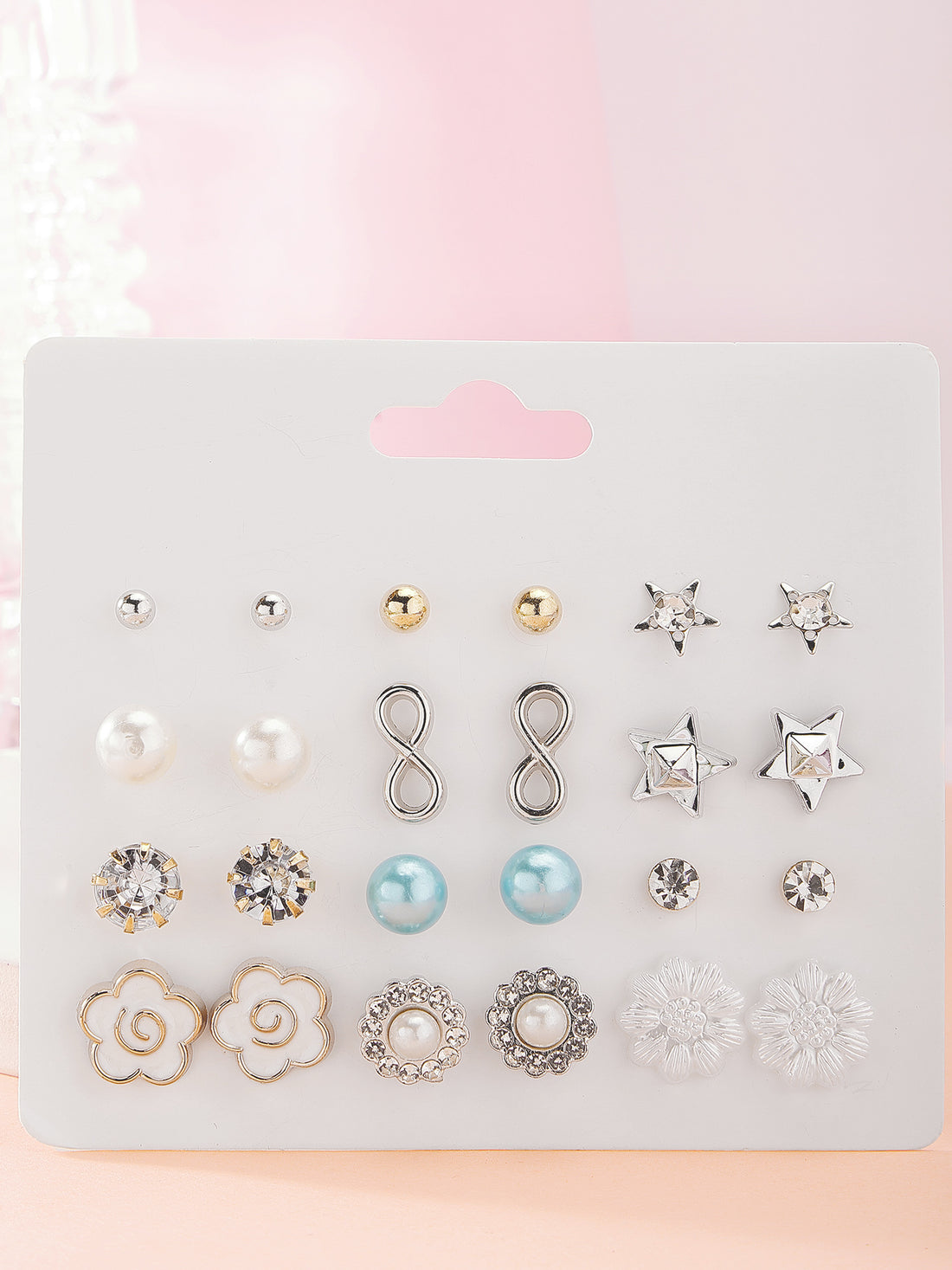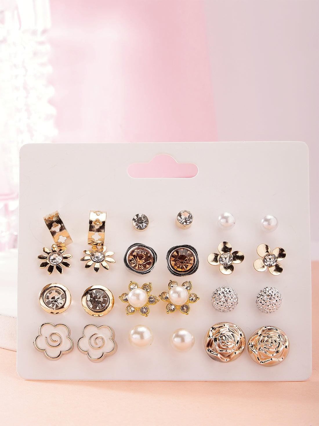 Bohey by KARATCART Set of 12 Gold and Silver Contemporary Studs Earrings Combo