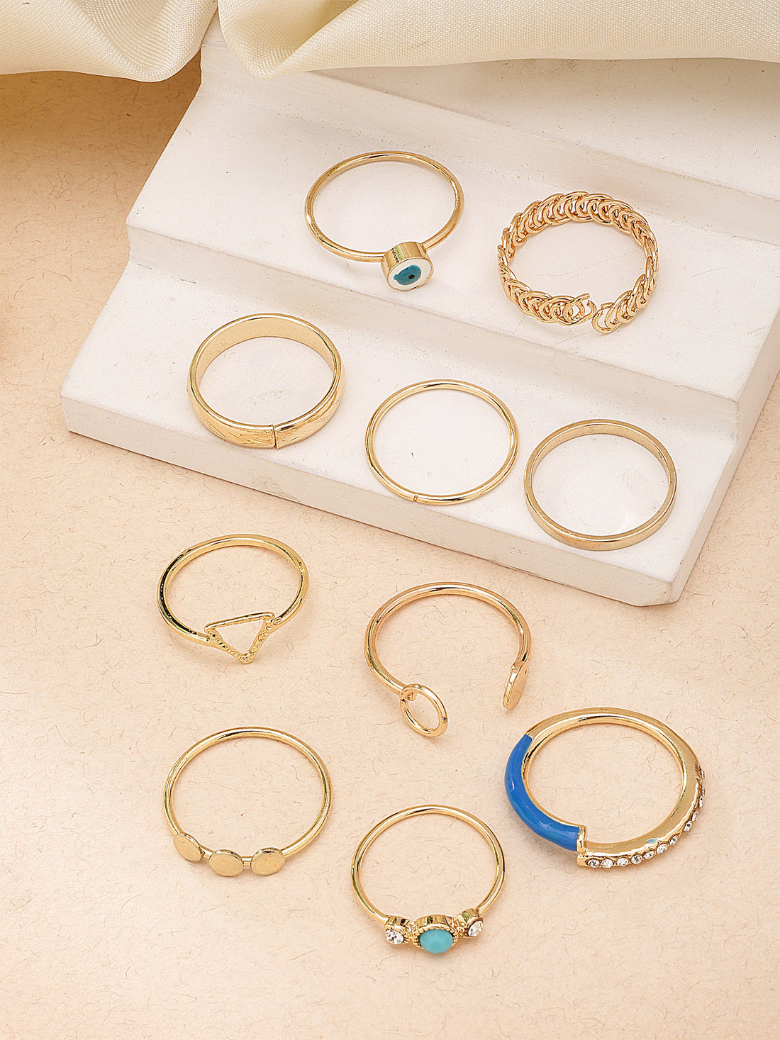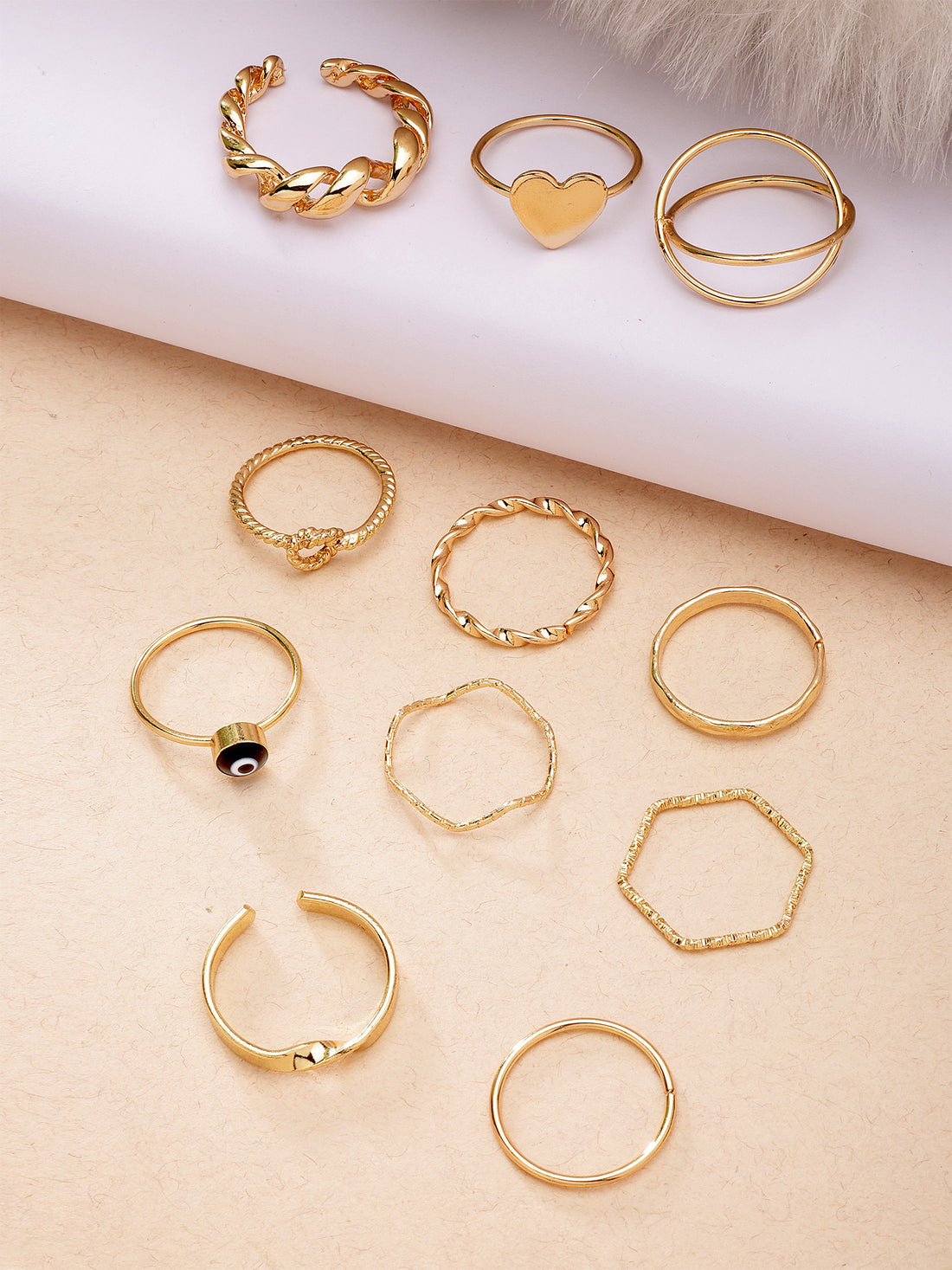Bohey by KARATCART Set of 10 Gold-Plated Boho Midi Finger Rings for Women