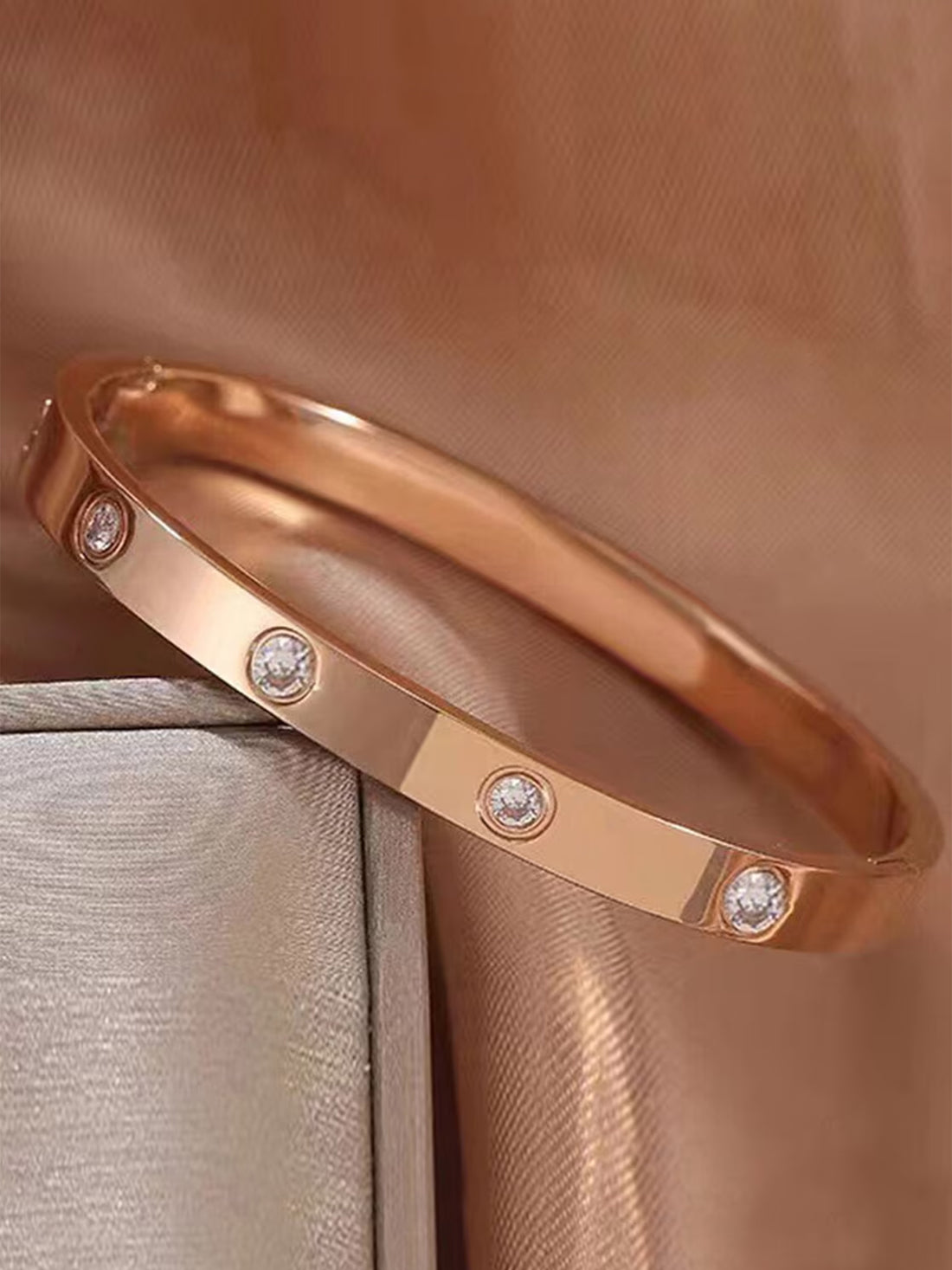 Bohey by KARATCART Rose Gold Plated CZ Stainless Steel Kada Bracelet for Women
