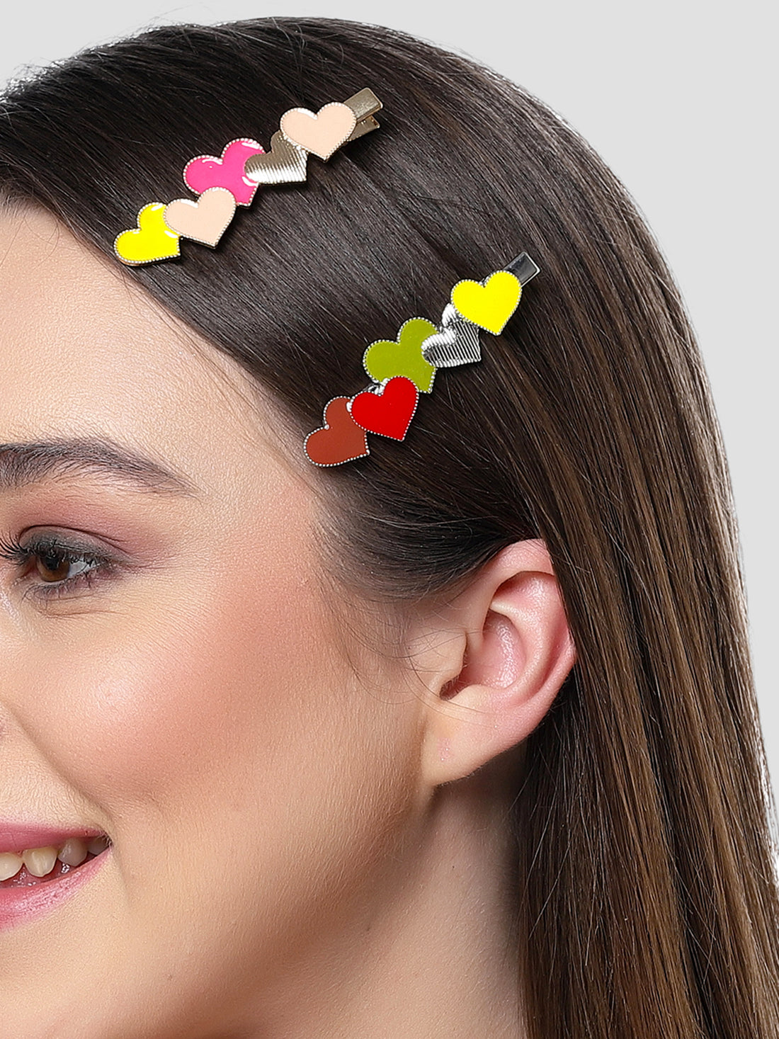Bohey by KARATCART Set of 2 Dual Tone Heart Shape Multicolor Hair Clips for Women