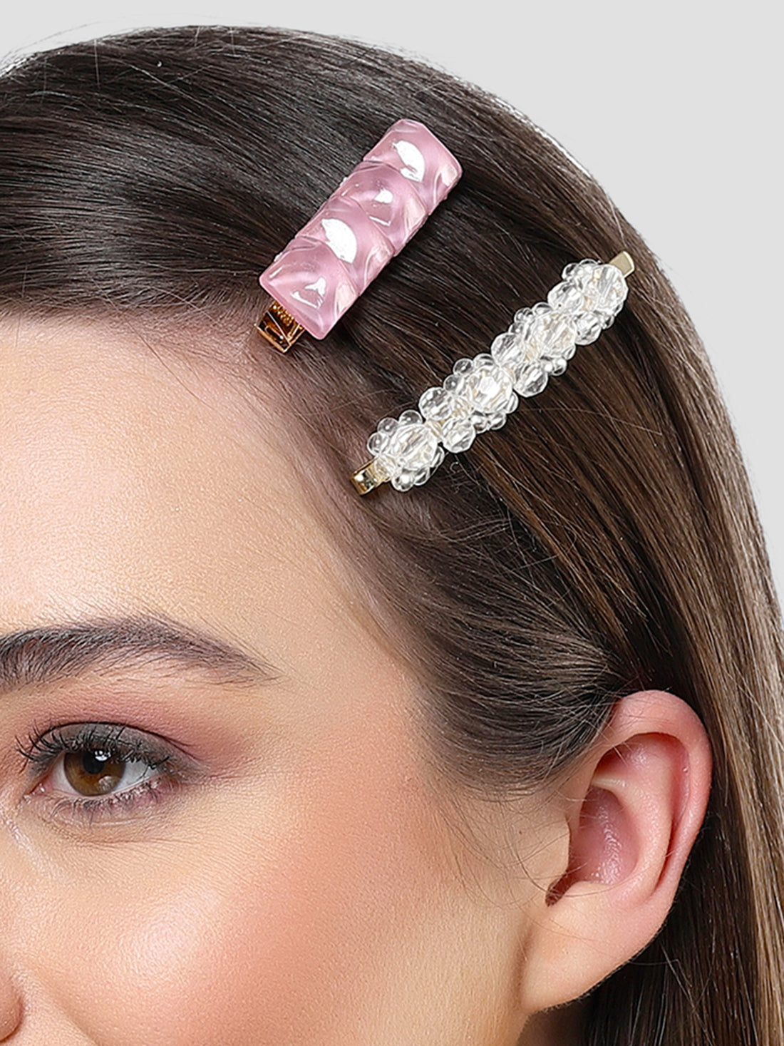 Bohey by KARATCART Set of 3 Pink and White Hair Clips for Women