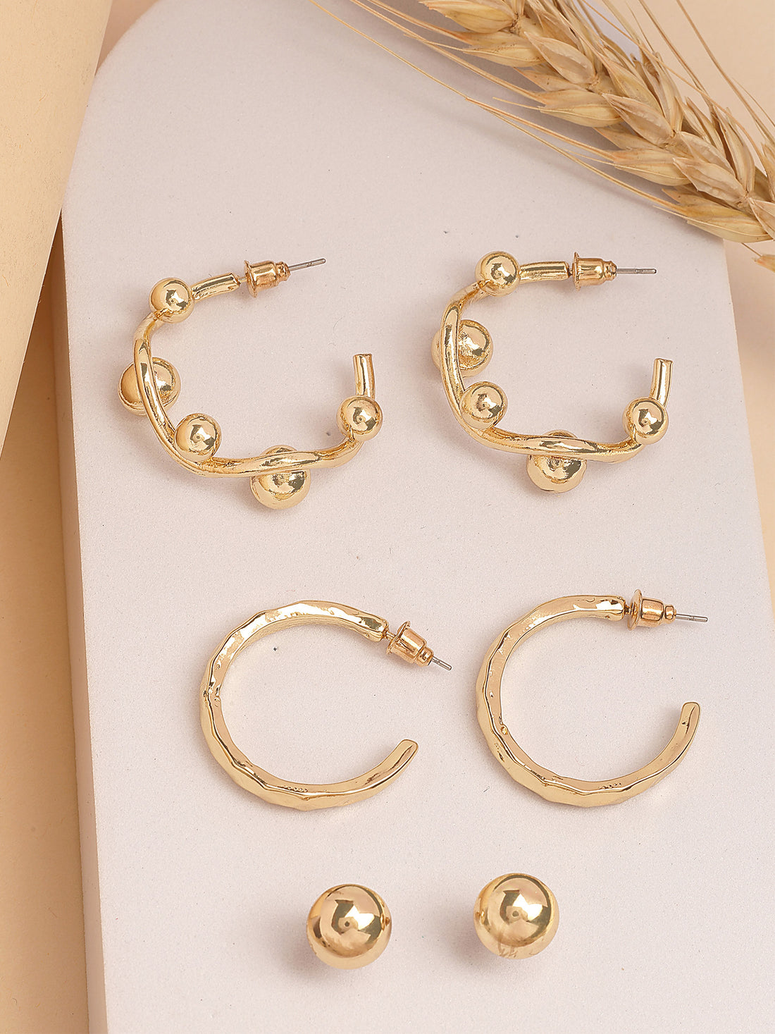 Bohey by KARATCART Set of 3 Gold-Plated Contemporary Hoop Earrings for Women
