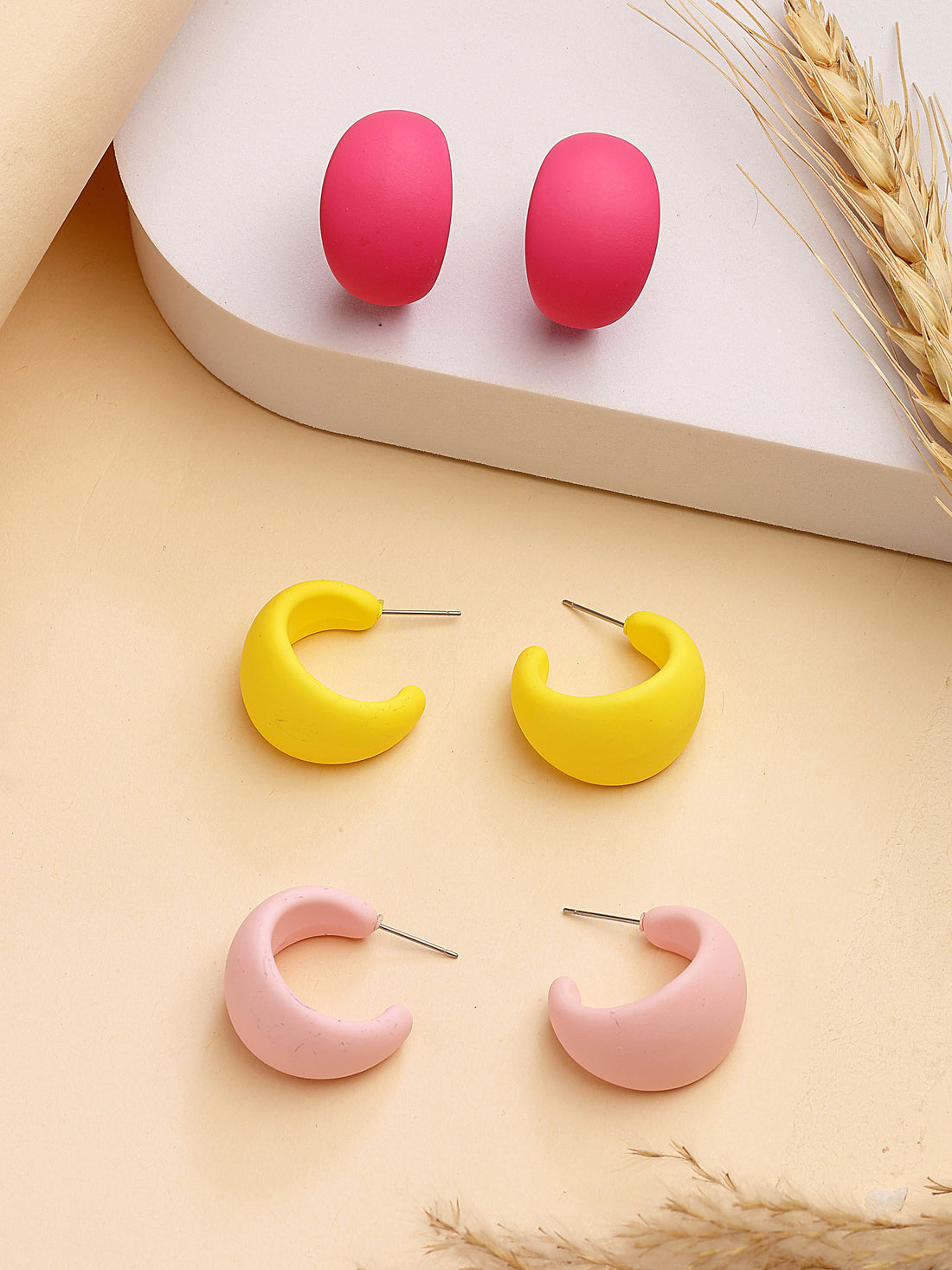 Bohey by KARATCART Set of 3 Purple and Yellow Resin Hoop Earrings Combo