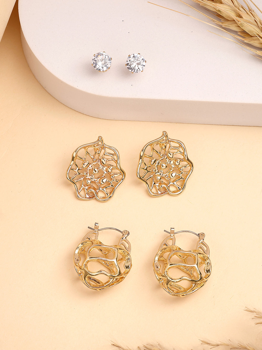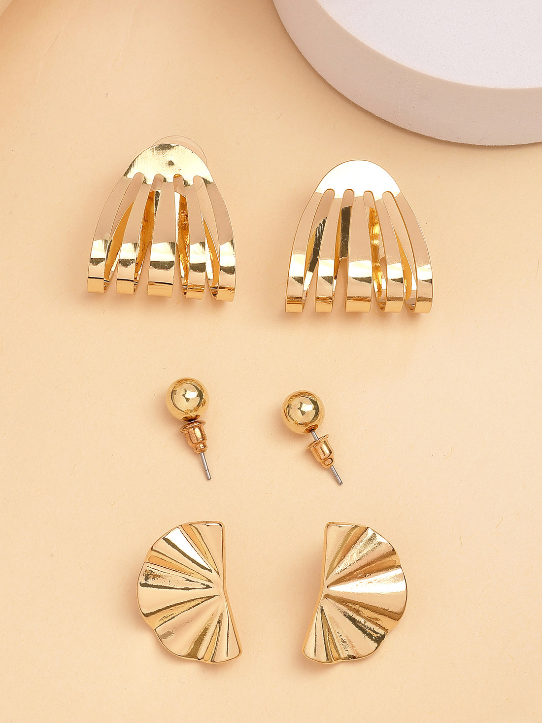 Bohey by KARATCART Set of 3 Gold Plated Stud Earrings for Women
