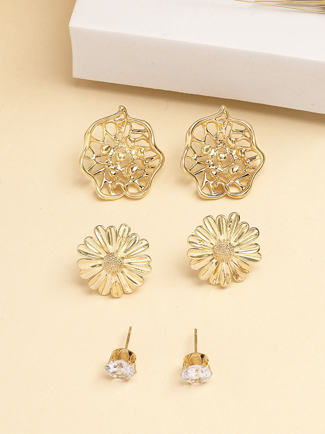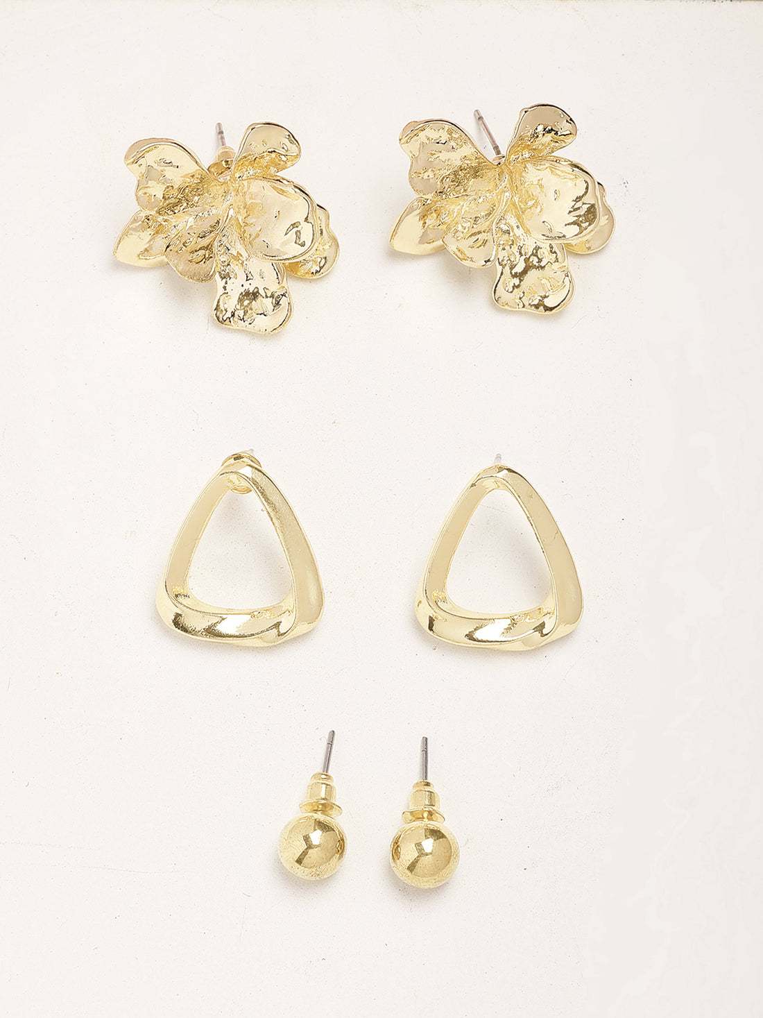 Bohey by KARATCART Set of 3 Gold Plated Floral Stud Earrings for Women
