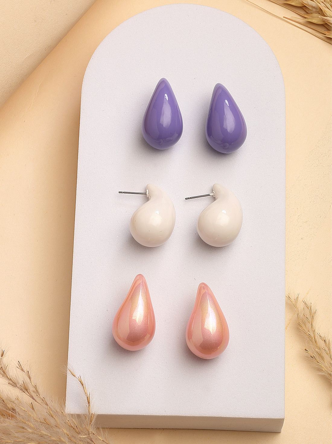 Bohey by KARATCART Set of 3 Drop Shape Stud Earrings for Women