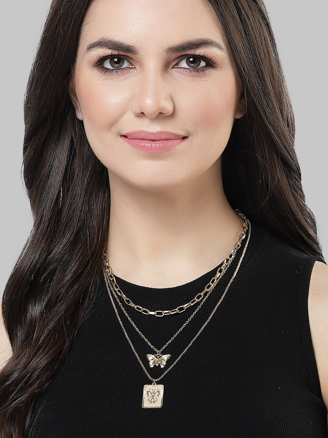 Bohey by KARATCART Gold Plated Medallion Butterfly Multicharm Multilayered Chain Necklace for Women