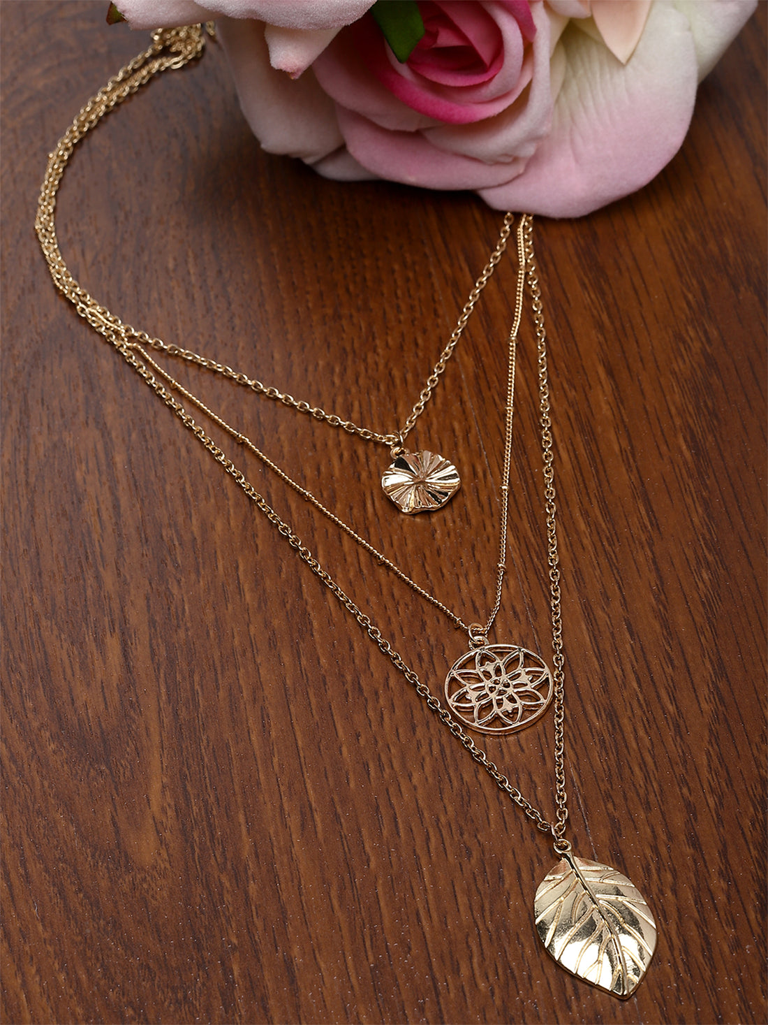 Bohey by KARATCART Gold Plated Leaf and Flower Multicharm Multilayered Chain Necklace for Women